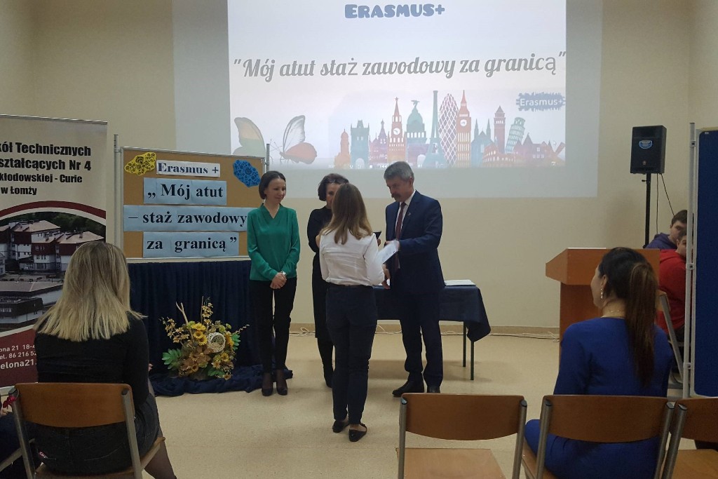 W dniu 06.12.2019r. Zespół Szkół Technicznych i Ogólnokształcących Nr 4 im. Marii Skłodowskiej – Curie w Łomży gościł w swojej siedzibie litewskiego partnera projektu „Mój atut – staż zawodowy za granicą” realizowanego w ramach projektu „Ponadnarodowa mobilność uczniów i absolwentów oraz kadry kształcenia zawodowego” finansowanego ze środków PO WER na zasadach Programu Erasmus+ sektor Kształcenie i szkolenia zawodowe.