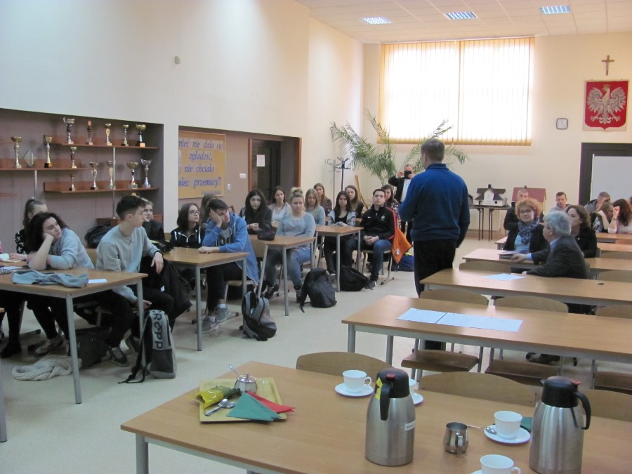 W dniu 17.03.2017r. odbyło się spotkanie informacyjne z uczestnikami projektu „Wiedza w praktyce – zagraniczne staże” w ramach programu Erasmus+ finansowanym ze środków PO WER na zasadach Programu Erasmus+ sektor Kształcenie i szkolenia zawodowe. W spotkaniu uczestniczyli przedstawiciele kadry zarządzającej, uczniowie technikum o profilach kształcenia: t. hotelarstwa, t. żywienia i usług gastronomicznych, t. budownictwa oraz nauczyciele opiekujący się uczniami podczas pobytu za granicą.