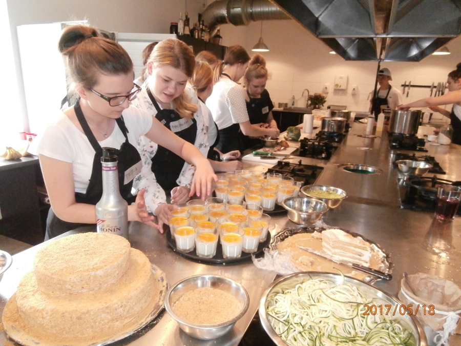 Głównym celem wyjazdu były staże odbywane przez uczniów w litewskim przedsiębiorstwie budowlanym, firmie gastronomicznej oraz w hotelach „Promenada” i „Morena” w Kłajpedzie. Uczniowie z branży żywieniowej pracowali w nowoczesnym studiu kulinarnym „Ciop Ciop” pod okiem mistrzyni sztuki kulinarnej pani Laury Brekke. Tam poznawali i opracowywali receptury oraz sporządzali oryginalne potrawy kuchni litewskiej i międzynarodowej, które później degustowali. Mieli również niecodzienną możliwość przygotowania wykwintnych deserów kuchni francuskiej podczas warsztatów cukierniczych w studiu kulinarnym „Baker Street”. Wykorzystywali przy tym najnowocześniejszy sprzęt i urządzenia gastronomiczne.