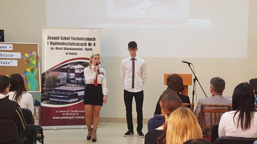 W drugiej części spotkania głos zabrali: koordynator projektu - pani Marta Zieńczuk oraz kierownik kształcenia praktycznego - pan Kazimierz Duda. Obydwoje zgodnie podkreślili, że zdobywanie nowych, międzynarodowych doświadczeń zawodowych, wzbogacanie świadomości branżowej, oraz poznawanie nowoczesnych technologii daje uczniom szansę na lepszy start.