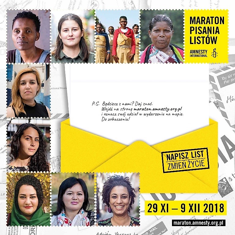 Już w najbliższy piątek 7 grudnia uczniowie i pracownicy naszej szkoły będą mogli pomóc więźniom sumienia i innym osobom narażonym na łamanie praw człowieka na całym świecie. Wystarczy przyjść na Maraton Pisania Listów organizowany przez Amnesty International. W naszej szkole maraton odbędzie się w sali 17 w godzinach 8.15 - 12.15.