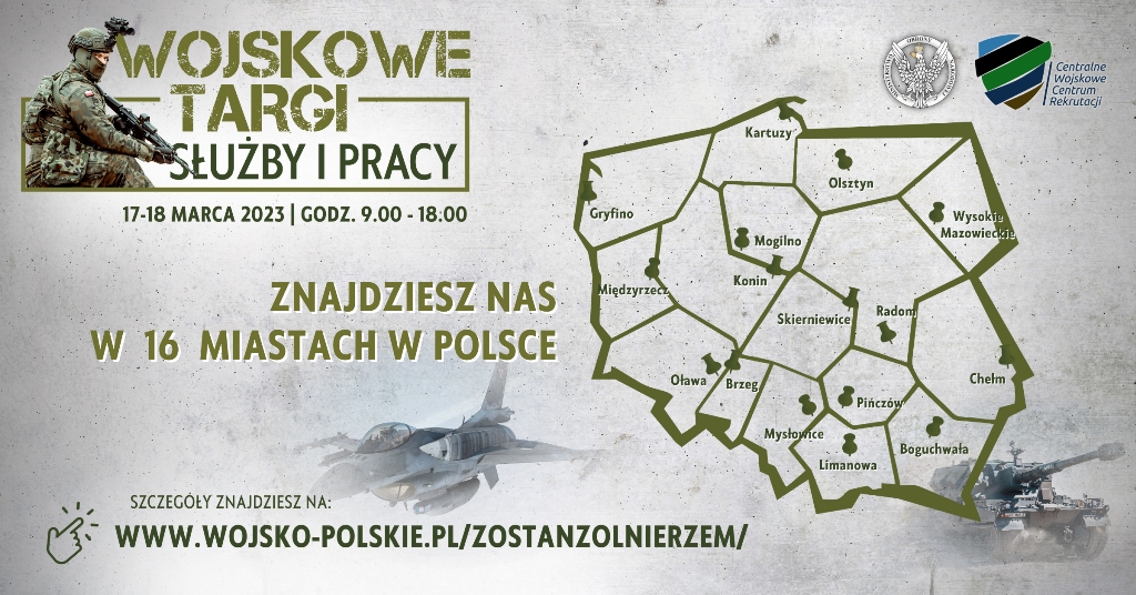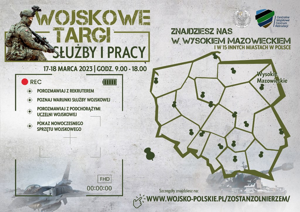 W dniach 17-18 marca 2023 r. w Wysokiem Mazowieckiem odbędą się Wojskowe Targi Służby i Pracy organizowane przez Miniterstwo Obrony Narodowej oraz Centralne Wojskowe Centrum Rekrutacji.