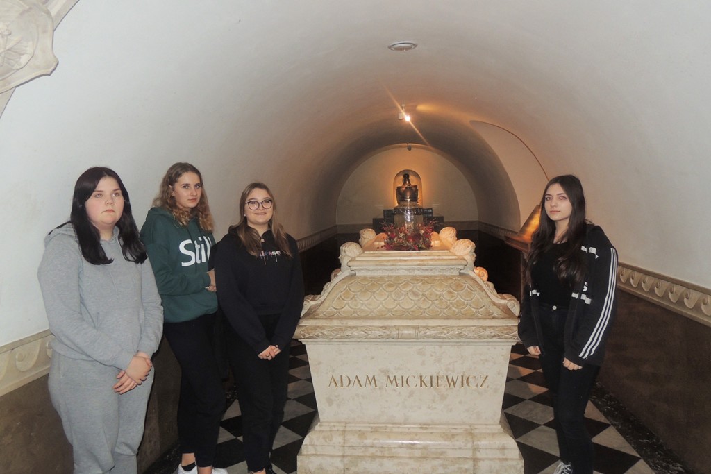 „Pierwszym punktem jaki zwiedziliśmy był Wawel, gdzie mogliśmy zobaczyć katedrę, w której są groby królów Polski, Józefa Piłsudskiego, Władysława Sikorskiego i Lecha Kaczyńskiego z małżonką. Następnie weszliśmy na wieżę, gdzie znajdował się dzwon Zygmunta. Zwiedzając Kraków, szliśmy Drogą Królewską na Stary Rynek, na którym był pomnik Adama Mickiewicza, bazylika mariacka i miejsce upamiętniające hołd pruski. W Zakopanem poznaliśmy historię miasta, zwiedziliśmy willę Atma, w której mieszkał Karol Szymanowski - twórca „Harnasiów”, spacerowaliśmy po Krupówkach.”