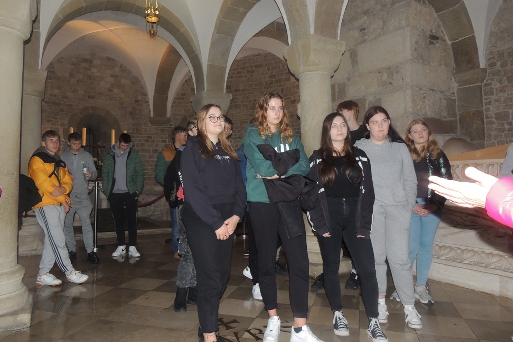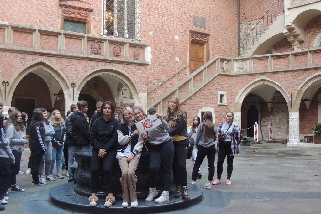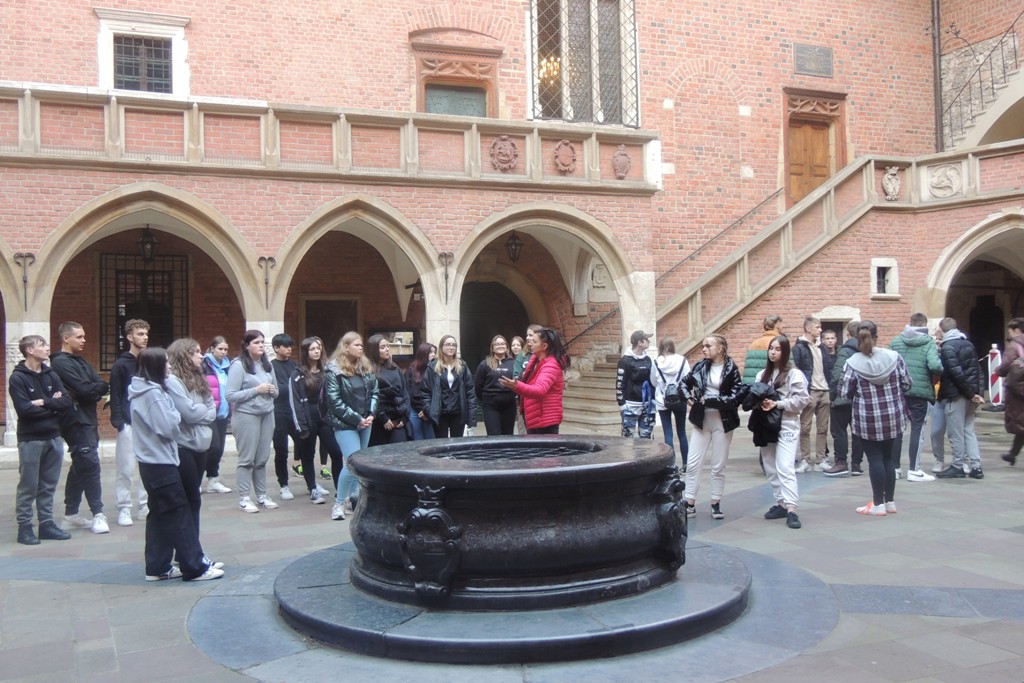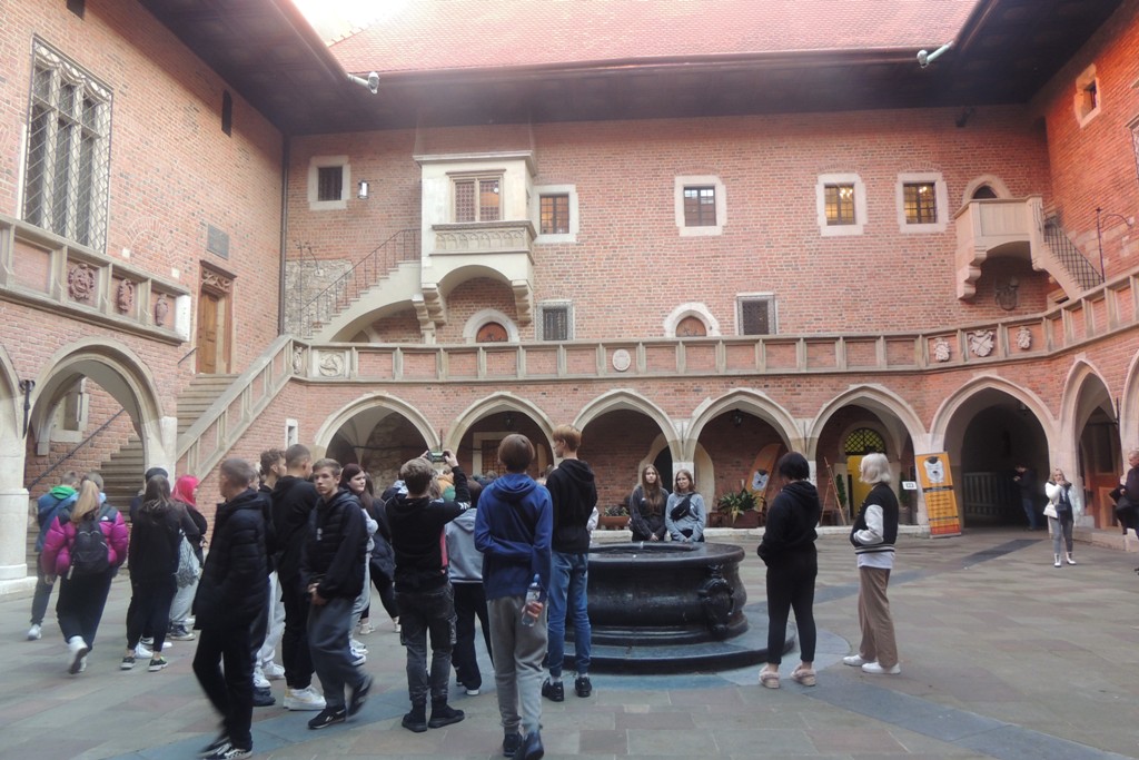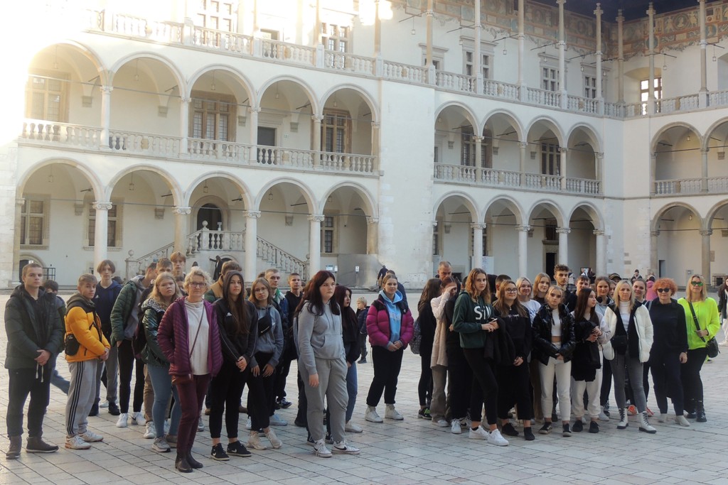 Trzecim punktem programu wycieczki był Zamek Królewski na Wawelu. Państwowe Zbiory Sztuki - jedno z miejsc o największym znaczeniu historycznym i kulturalnym w Polsce. W tej wielowiekowej siedzibie królów i symbolu polskiej państwowości, uczniowie podziwiali renesansowy dziedziniec oraz zobaczyli Zbrojownię - najcenniejsze polskie zbiory zabytkowej broni, od wieku XIII do XVII.