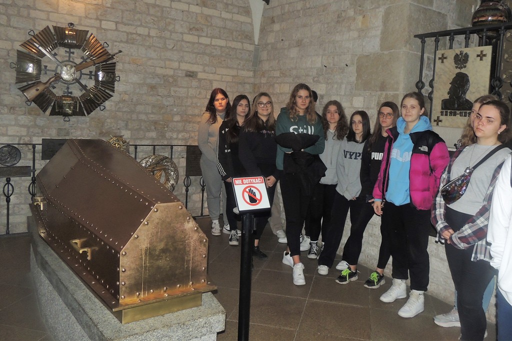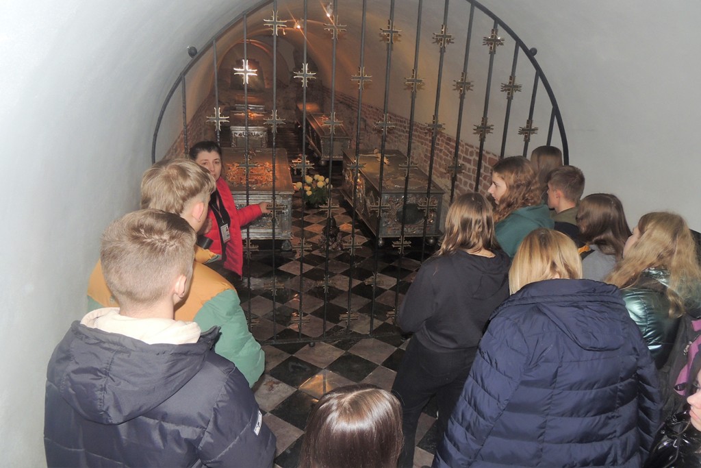 Drugim punktem programu była Katedra Wawelska. Uczniowie, zwiedzając to miejsce koronacji i nekropolię królów Polski oraz miejsce pochówku wieszczów i wybitnych Polaków, a także Wieżę Srebrnych Dzwonów i Kaplicę Zygmuntowską mogli przypomnieć sobie ważne dla historii Polski postaci i wydarzenia.