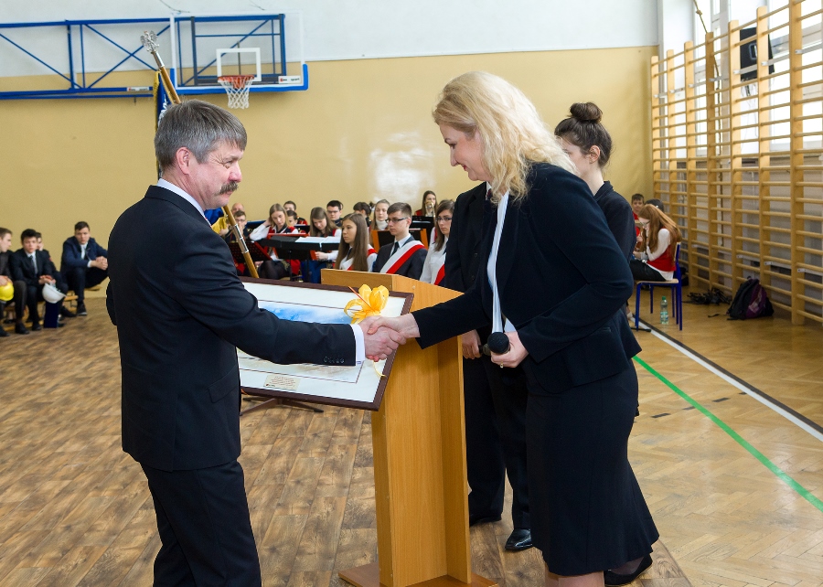 W uroczystej akademii z okazji Jubileuszu Szkoły połączonej z wręczeniem świadectw tegorocznym maturzystom udział wzięli przedstawiciele lokalnych władz samorządowych, zaprzyjaźnionych szkół z terenu miasta, duchowieństwa oraz absolwenci. Uroczystość rozpoczęła się wprowadzeniem Sztandaru Szkoły i przywitaniem licznie przybyłych gości. Nie zapomniano o tych, którzy już odeszli do wieczności, a tworzyli niegdyś społeczność szkolną, o zmarłych nauczycielach, uczniach i absolwentach. Ich pamięć uczczono minutą ciszy. Podczas obchodów nasi uczniowie z dumą zaprezentowali kierunki kształcenia, które realizuje i oferuje nasza Szkoła. Jubileusz to czas wspomnień, których nie zabrakło również w wystąpieniach zaproszonych gości. W stronę Dyrekcji Szkoły i nauczycieli skierowano życzenia i podziękowania.