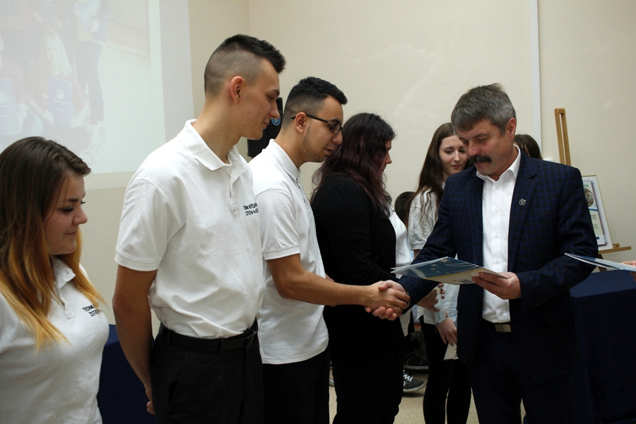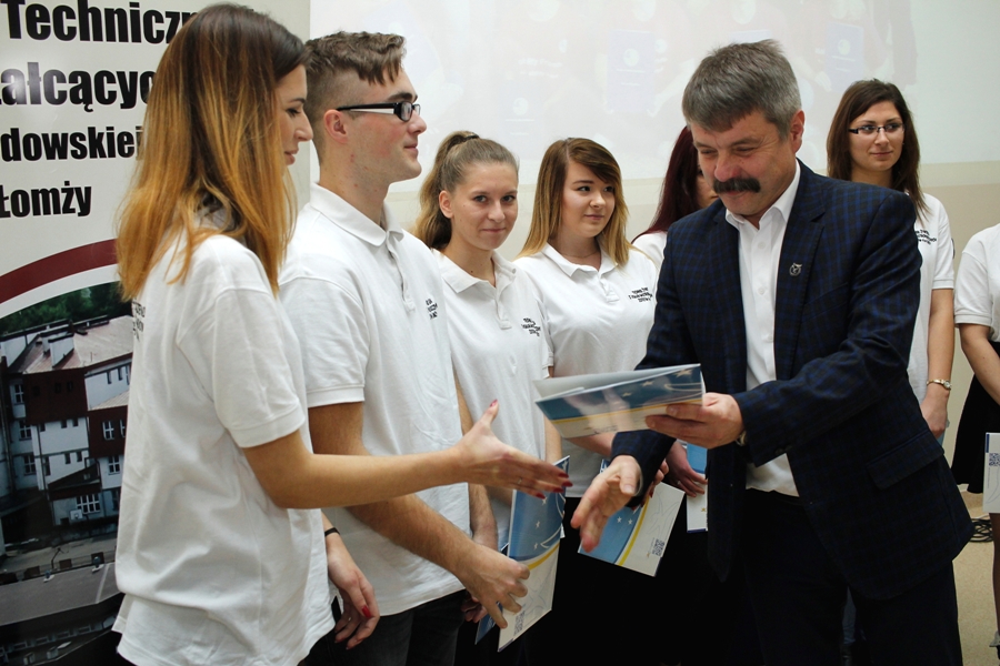 Najważniejszą częścią uroczystości było wręczenie Certyfikatów Europass Mobilność uczestnikom projektu przez pana dyrektora Artura Ciborowskiego. Certyfikaty te, potwierdzają udział w europejskiej ścieżce kształcenia zawodowego realizowanego w oparciu o współpracę z międzynarodowymi firmami oraz zdobyte przez uczestników podczas stażu umiejętności, wiedzę i kompetencje. Wzmacniają również możliwości zatrudnienia na lokalnym i europejskim rynku pracy.