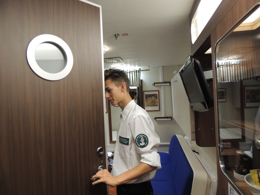 serwowanych w ekskluzywnej restauracji a la carte i w ramach bufetu szwedzkiego. Szef kuchni na promie zapoznał uczniów z wymogami pracy na różnych stanowiskach pionu gastronomicznego oraz z logistyką zaopatrzenia promu, przygotowania potraw i ich dystrybucją. Niezwykle interesującą dla młodzieży okazała się prezentacja ekskluzywnych kabin Premium Class, Family Class, Panorama Class i Panorama Suite rzadko rezerwowanych przez turystów. Uczniowie zwiedzili również nowoczesne centrum SPA zaprojektowane z stylu skandynawskim z widokiem na archipelag.