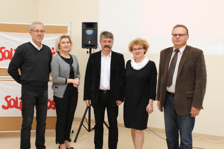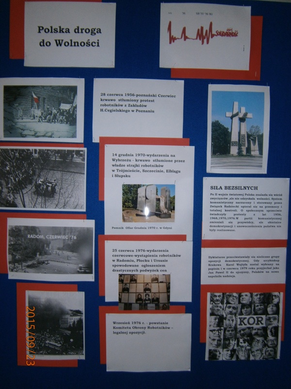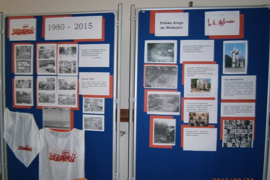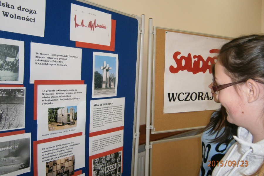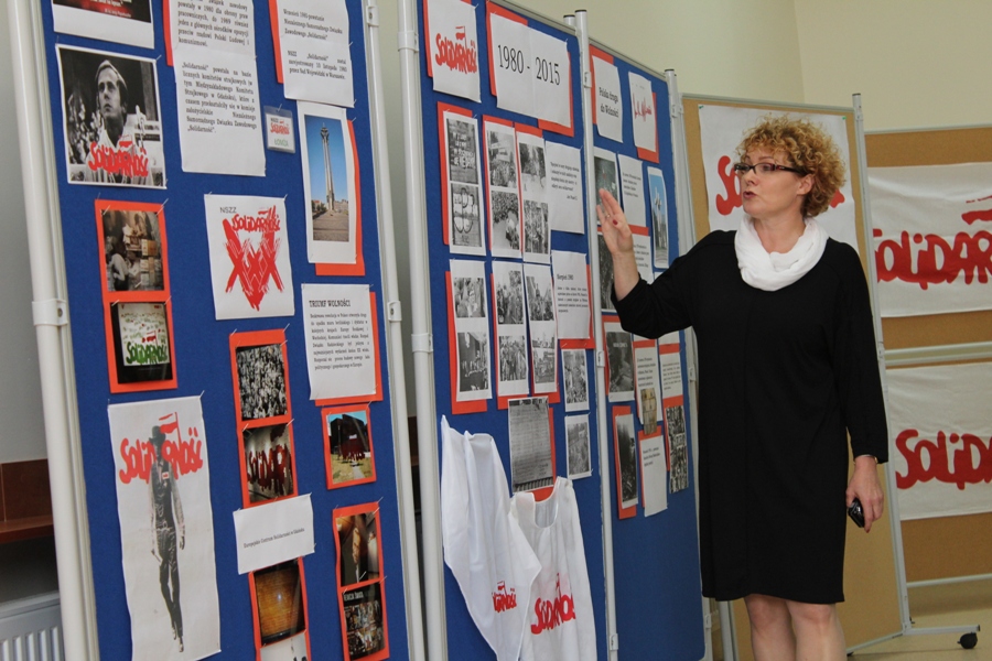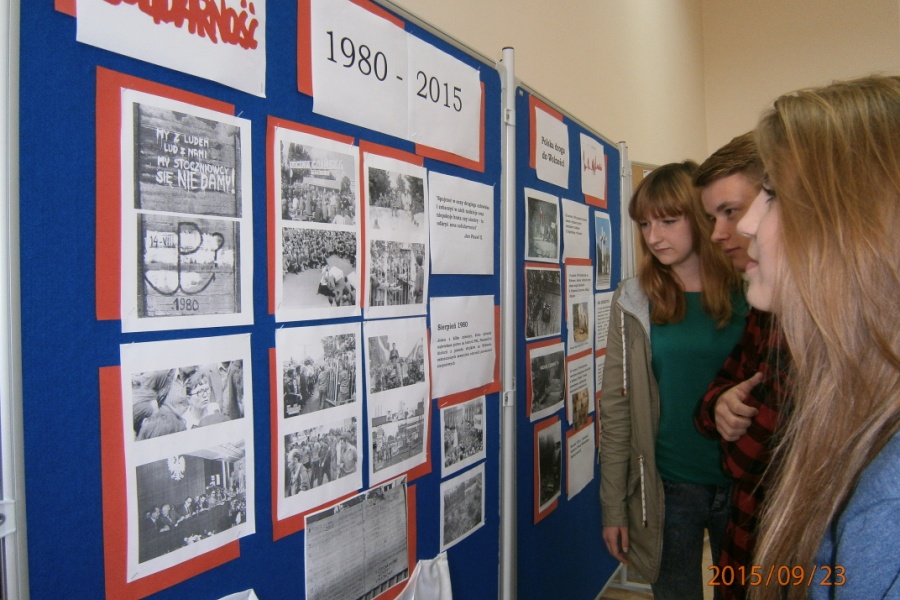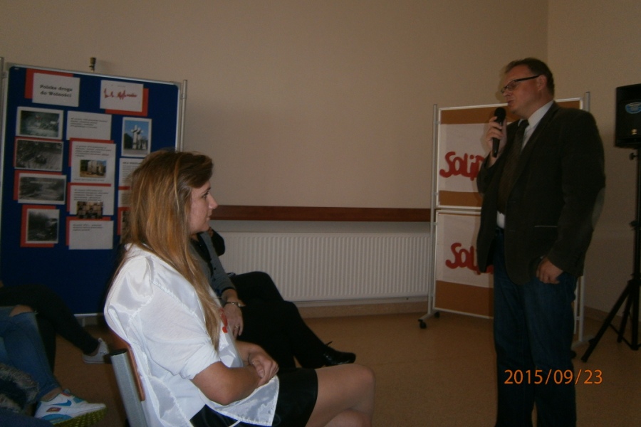 Dnia 23 września 2015r. w ramach realizacji projektu „Solidarność wczoraj i dziś” w naszej szkole odbyła się uroczystość związana z obchodami 35 rocznicy podpisania porozumień sierpniowych i powstania NSZZ „Solidarność”. Pieśń „Mury” Jacka Kaczmarskiego i „Piosenka dla córki” J. Pietrzyka wprowadziły uczestników spotkania w klimat strajków na Wybrzeżu w 1980 roku, natomiast krótki film z filmoteki IPN-u zapoznał ich z okolicznościami i źródłami społecznej rewolucji - czyli okresem powstania ruchu „Solidarności”. Integralną częścią spotkania był wykład dr. hab. Krzysztofa Sychowicza – historyka, zajmującego się m.in. problematyką „Solidarności” w naszym regionie. Przedstawiciel białostockiego oddziału IPN,