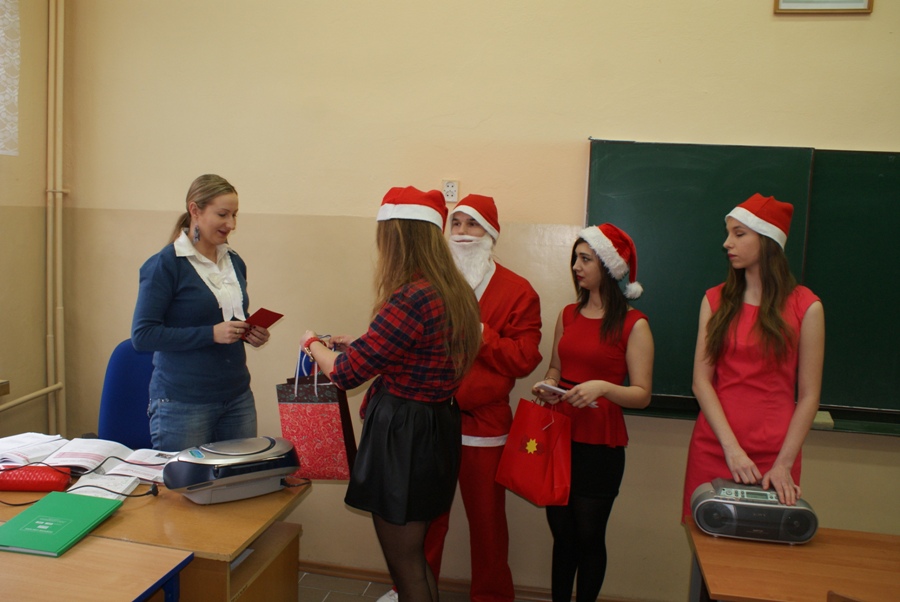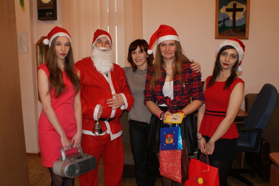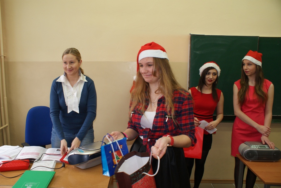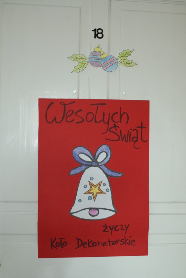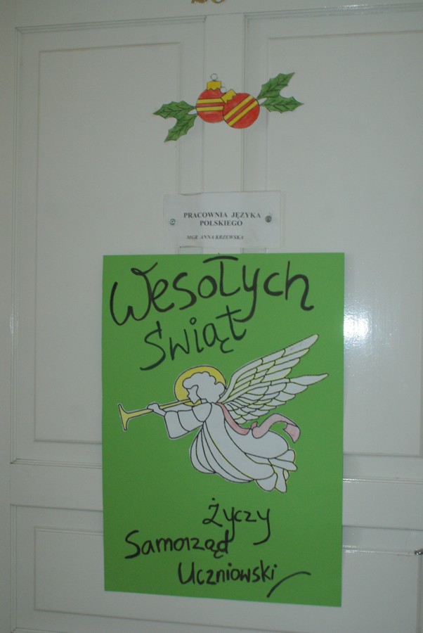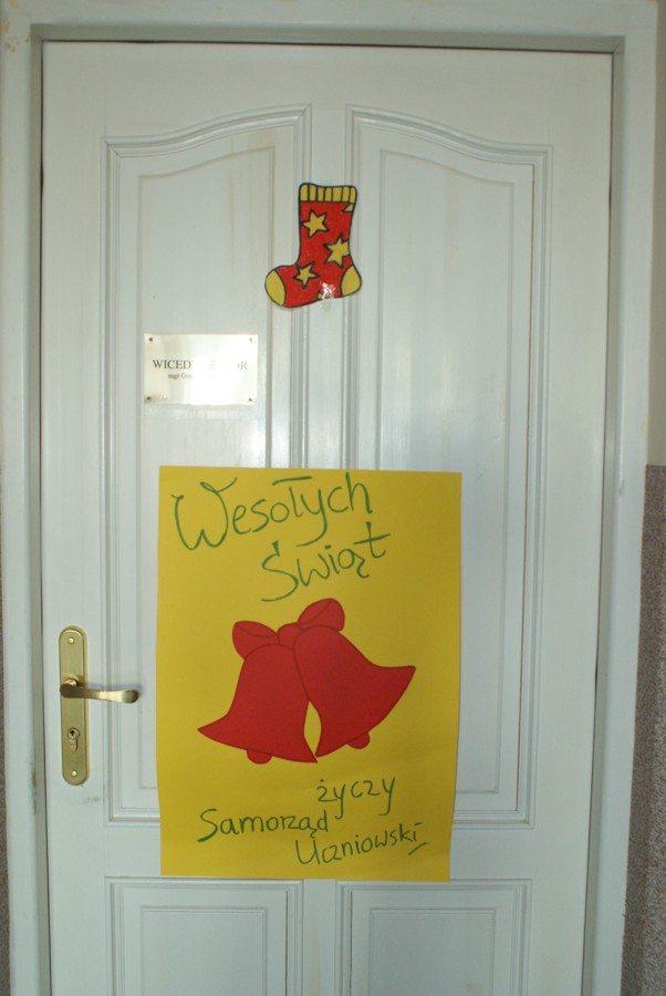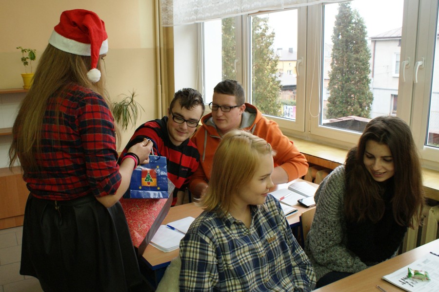 00W piątek 4 grudnia w murach naszej szkoły rozlegał się dźwięk tradycyjnego dzwonka, jakim Święty Mikołaj obwieszcza swoje przybycie. W związku z obchodzonymi 6 grudnia Mikołajkami, na zaproszenie Samorządu Uczniowskiego zagościł u nas Święty Mikołaj wraz z trzema Śnieżynkami. Odwiedzając uczniów podczas lekcji, życzył wesołych świąt Bożego Narodzenia; Śnieżynki zaś przy dzwięku kolęd częstowały wszystkich słodkościami i zadawały świąteczne zagadki. Ponadto, nauczyciele i pracownicy szkoły otrzymali kartki okolicznościowe wykonane przez Samorząd Uczniowski. W szkole zagościła już świąteczna atmosfera dzięki wizycie  Świętego  Mikołaja, jak również za sprawą licznych dekoracji
