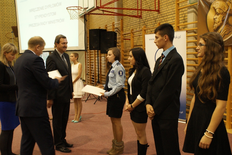 00W bieżącym roku szkolnym dwoje uczniów naszego Zespołu, Mateusz Obiedziński z kl. 4TB oraz Natalia Chylińska z klasy 2AP zostało stypendystami Prezesa Rady Ministrów. Uczestniczyli oni w wojewódzkiej uroczystości wręczenia dyplomów, która odbyła się 3 listopada w IV Liceum Ogólnokształcącym im. Króla Zygmunta Augusta w Białymstoku. Dyplomy wręczyli: podlaski kurator oświaty Jerzy Kiszkiel oraz wicewojewoda podlaski Wiesław Żyliński.Serdecznie gratulujemy stypendystom i życzymy dalszych sukcesów w nauce.