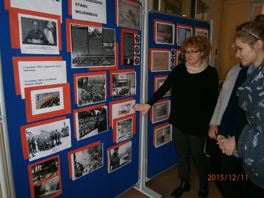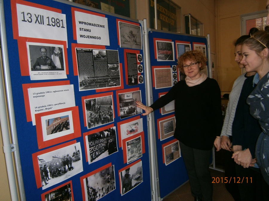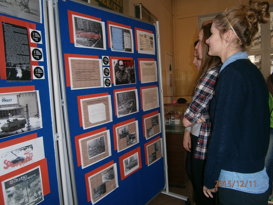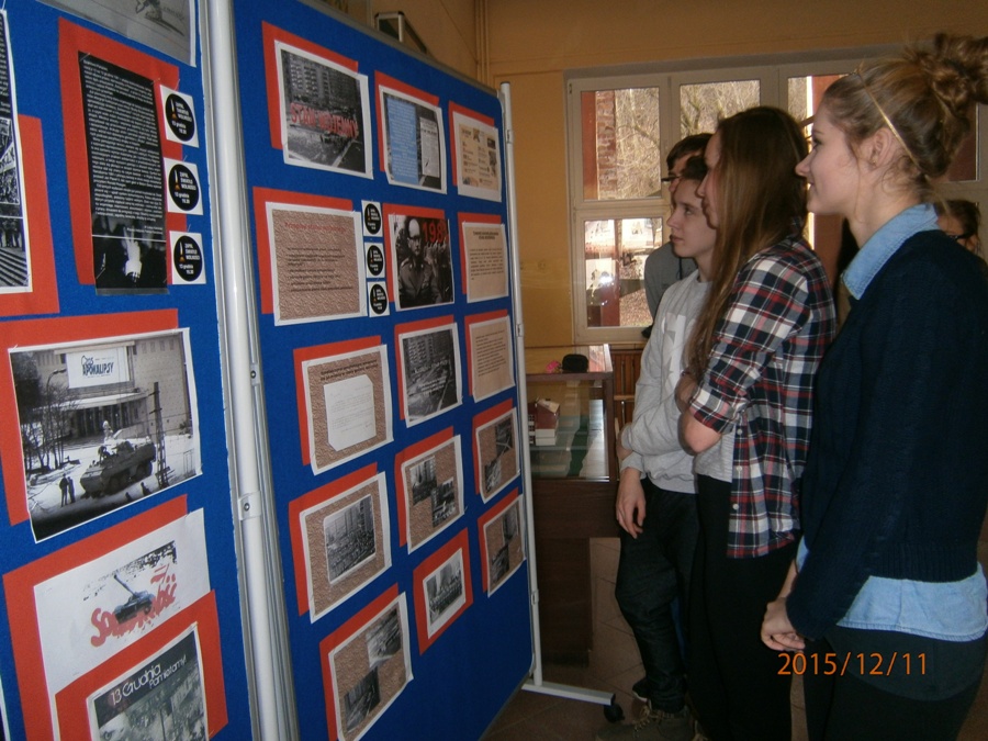 Przeprowadzone w dniu 11 grudnia lekcje historii z wykorzystaniem wystawy pozwoliły uczniom lepiej zrozumieć atmosferę stanu wojennego, będącego wstrząsem dla całego społeczeństwa .