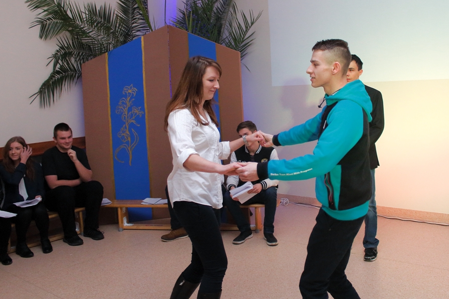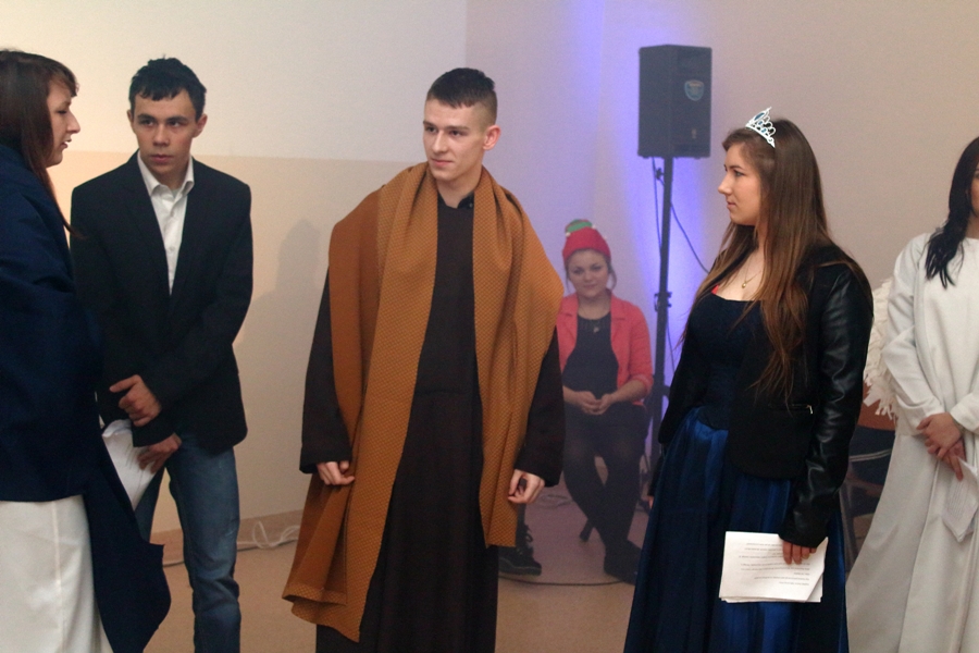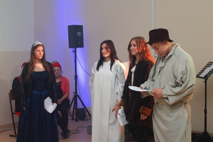 22 grudnia 2015r. mieliśmy przyjemność obejrzeć przedstawienie jasełkowe oraz posłuchać kolęd i utworów bożonarodzeniowych przygotowanych przez uczniów naszej szkoły pod opieką o. Cezarego Szcześniaka. Dodatkowo, zostały wręczone nagrody uczniom biorącym udział w konkursie p.t. „Bożonarodzeniowe inspiracje”. Komisja konkursowa przyznała I miejsce Katarzynie Borkowskiej z klasy 1TŻ, II miejsce Ewie Darmetko z klasy 3BP, III miejsce Sylwii Ładzie z klasy 1TŻ oraz wyróżnienia Natalii Niedźwieckiej z klasy 1AP, Natalii Wojno z klasy 2TŻ i Karolinie Gniazdowskiej z klasy 1TŻ.