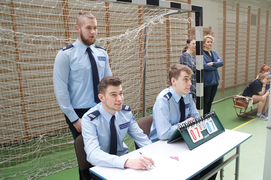 p. Anny Ulińskiej dopingowali naszą drużynę. Podczas turnieju uczniowie z klas policyjnych pomagali również w liczeniu punktów w poszczególnych meczach.