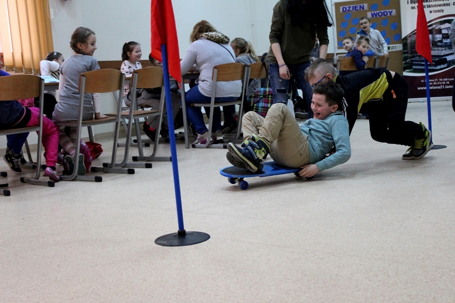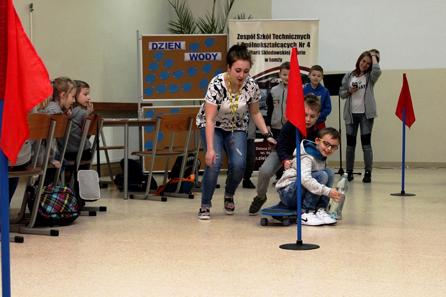 W pierwszej części Dnia Wody uczestniczyły dzieci z klasy IIb SP 9 w Łomży wraz z wychowawczynią panią Małgorzatą Glińską i rodzicami. Gry i zabawy dla dzieci przygotowały uczennice z klasy II o profilu psychologiczno- pedagogicznym pod kierunkiem pani Alicji Modzelewskiej i pani Beaty Szymanowskiej. Dzieci zostały podzielone na drużyny, które rywalizowały ze sobą w różnych konkurencjach sportowych i edukacyjnych. W turnieju zwyciężyła grupa, którą opiekowała się Ilona Żukowski z klasy 2pp. Zwycięscy otrzymali nagrody książkowe ufundowane przez MPWiK Sp. z o.o. i ZSTiO nr 4 w Łomży. Wszyscy uczestnicy zostali obdarowani upominkami przygotowanymi przez MPWiK Sp. z o.o..