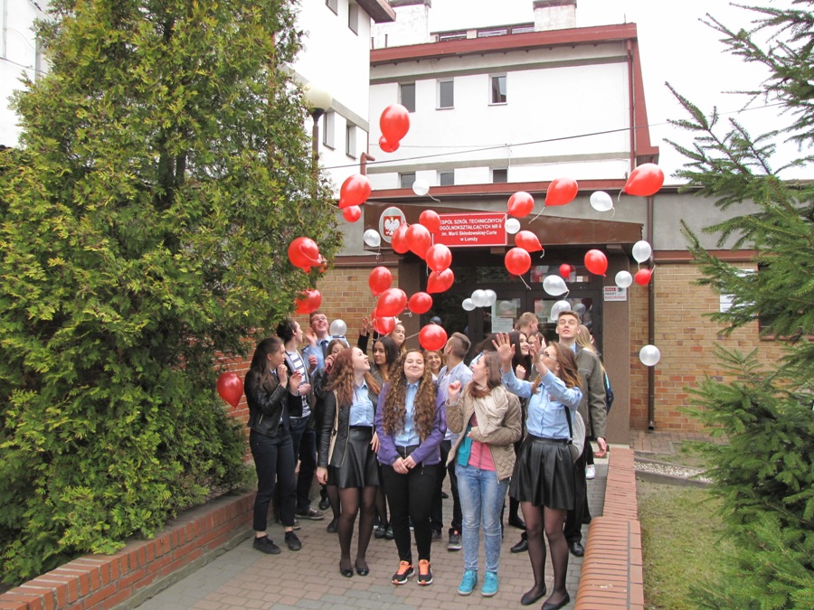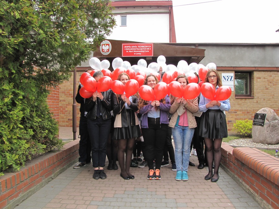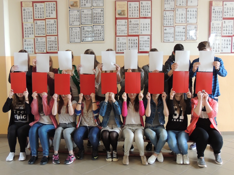 W odpowiedzi na apel Podlaskiego Kuratora Oświaty oraz Zarządu Rodziny Szkół Imienia Bohaterów Walki o Niepodległość Rzeczypospolitej nasza szkoła w dniach 25-29 kwietnia 2016r. wzięła udział w projekcie „W barwach biało-czerwonych”, który realizowany jest z okazji Święta Konstytucji 3 Maja oraz Święta Flagi. Udział w projekcie polegał na opracowaniu i zrealizowaniu własnego przedsięwzięcia, które zintegruje społeczność szkolną, wzmocni poczucie wspólnoty i dumy z symboli i barw narodowych. Uczniowie postanowili w sposób niestandardowy uczcić święto flagi, pokazać radość i dumę z barw narodowych, ale też dowcipnie i w formie zabawy zachęcić innych do eksponowania symboli narodowych i wspólnego świętowania. Pomysły uczniów dotyczyły też aranżacji