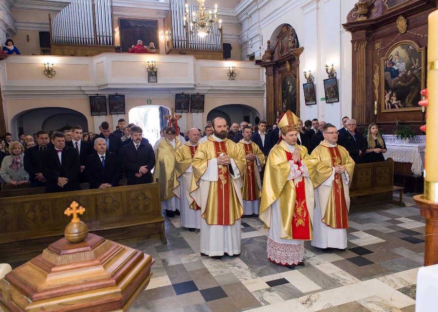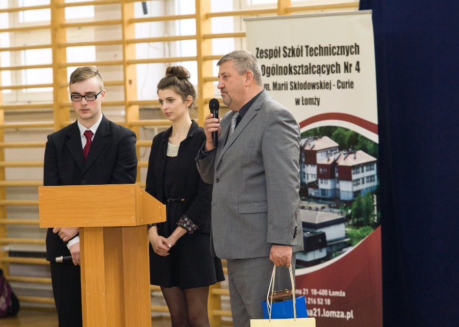 W dniu 29 kwietnia 2016r. odbyły się uroczyste obchody 50-lecia istnienia Zespołu Szkół Technicznych i Ogólnokształcących Nr 4 im. Marii Skłodowskiej – Curie w Łomży. Jubileusz naszej Szkoły rozpoczął się Mszą Świętą Dziękczynną w Kościele Braci Mniejszych Kapucynów pod przewodnictwem Biskupa Pomocniczego Diecezji Łomżyńskiej Tadeusza Bronakowskiego. Uczestnicy Eucharystii modlili się w intencji dyrekcji, wszystkich pracowników, uczniów i absolwentów szkoły. Wśród kapłanów sprawujących Mszę Świętą obecni byli również nasi absolwenci m.in. ksiądz Andrzej Borkowski oraz ojciec Grzegorz Zakrzewski, który na koniec sprawowanej Mszy Świętej skierował wiele ciepłych słów do uczniów i nauczycieli naszej Szkoły.