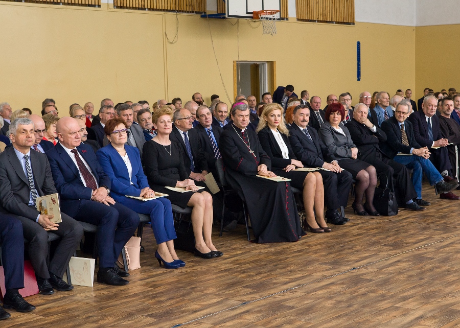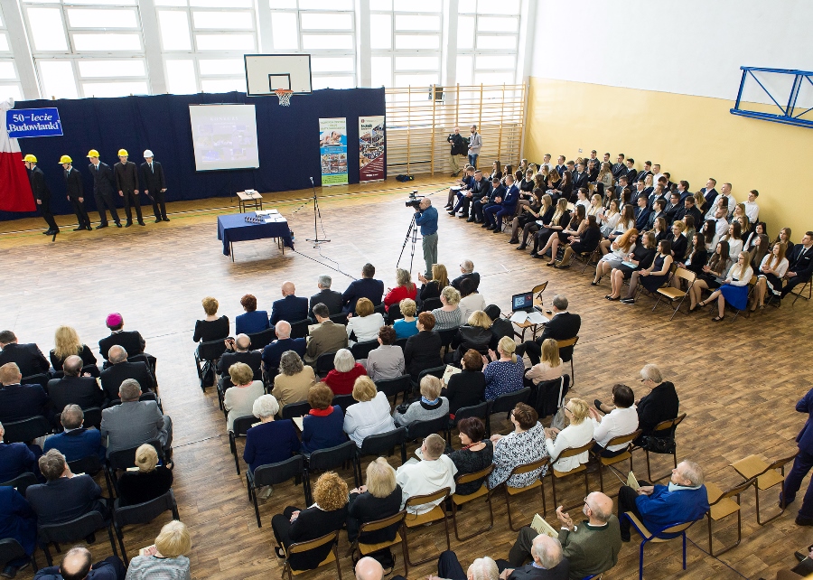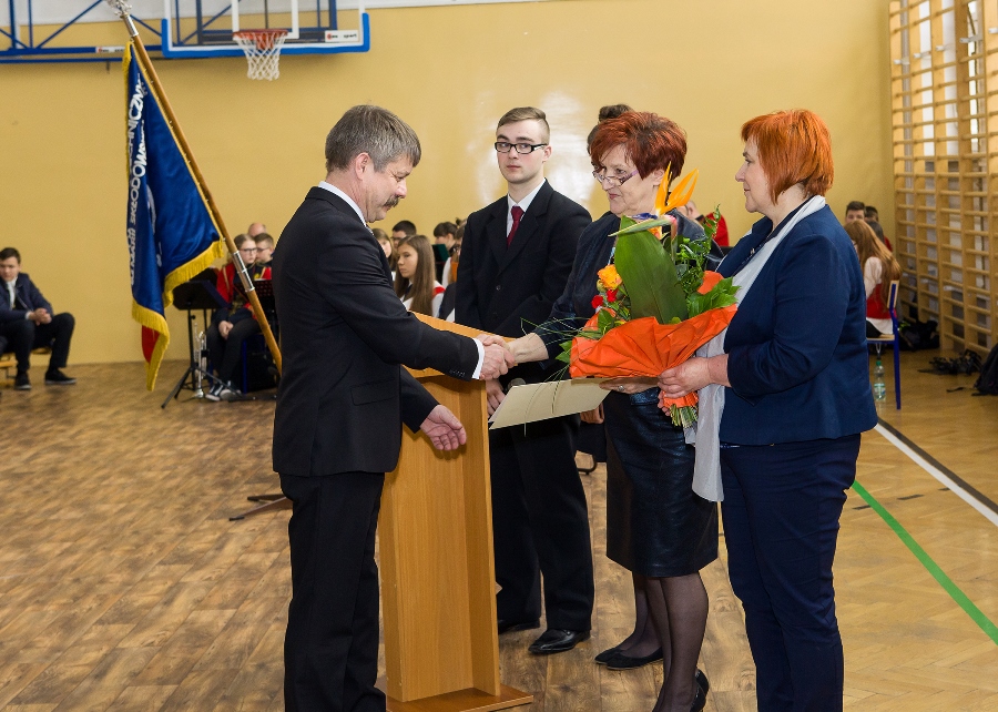 W uroczystej akademii z okazji Jubileuszu Szkoły połączonej z wręczeniem świadectw tegorocznym maturzystom udział wzięli przedstawiciele lokalnych władz samorządowych, zaprzyjaźnionych szkół z terenu miasta, duchowieństwa oraz absolwenci. Uroczystość rozpoczęła się wprowadzeniem Sztandaru Szkoły i przywitaniem licznie przybyłych gości. Nie zapomniano o tych, którzy już odeszli do wieczności, a tworzyli niegdyś społeczność szkolną, o zmarłych nauczycielach, uczniach i absolwentach. Ich pamięć uczczono minutą ciszy. Podczas obchodów nasi uczniowie z dumą zaprezentowali kierunki kształcenia, które realizuje i oferuje nasza Szkoła. Jubileusz to czas wspomnień, których nie zabrakło również w wystąpieniach zaproszonych gości. W stronę Dyrekcji Szkoły i nauczycieli skierowano życzenia i podziękowania.