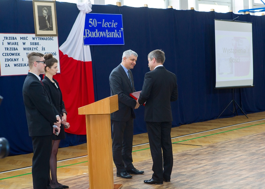 50 lat „Budowlanki” zbiegło się ze srebrnym jubileuszem na stanowisku Dyrektora Szkoły Pana Artura Ciborowskiego i pracy dydaktycznej Wicedyrektora Szkoły Pana Wojciecha Dardzińskiego. Wszyscy uczestnicy uroczystości przy akompaniamencie Orkiestry Dętej odśpiewali gromkie STO LAT Jubilatom. Szczególną chwilą dla tegorocznych absolwentów i maturzystów było wręczenie świadectw ukończenia naszej Szkoły podczas uroczystych obchodów Jubileuszu 50–lecia ZSTiO nr 4 w Łomży. Podczas uroczystości Jubileuszu wręczono nagrody uczniom biorącym udział w konkursie „Budowlanym” oraz podziękowania rodzicom maturzystów kończących edukację w naszej Szkole.