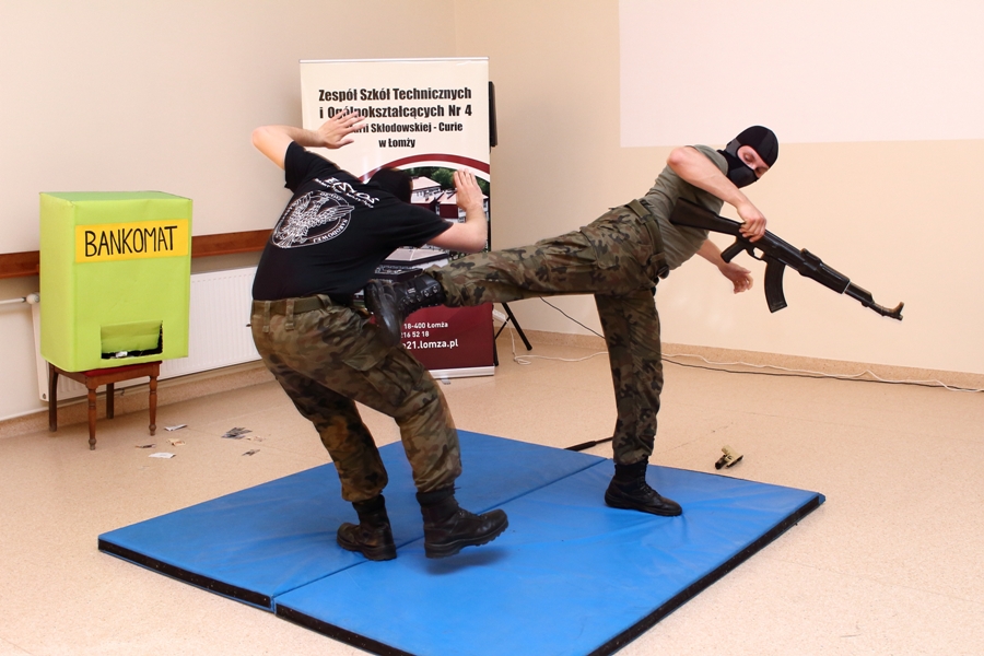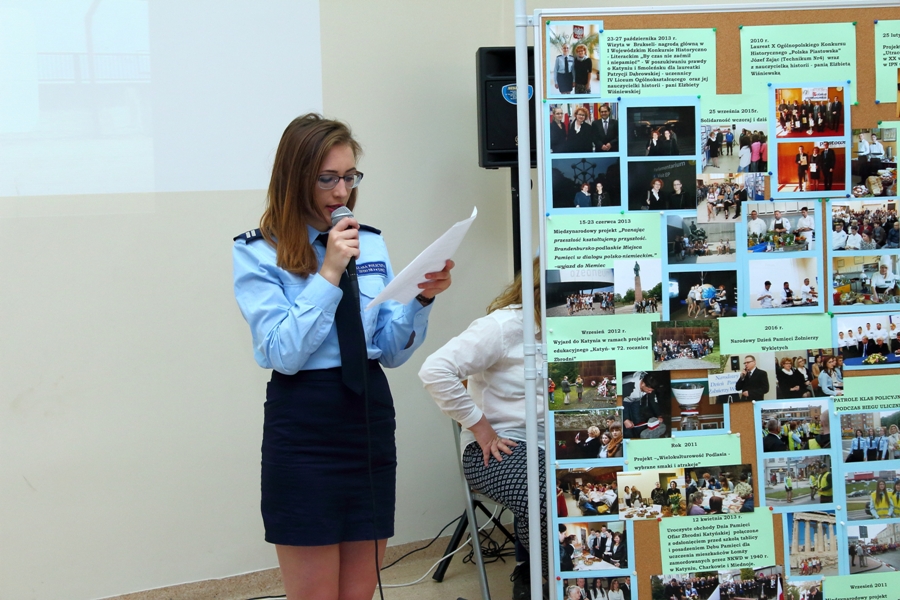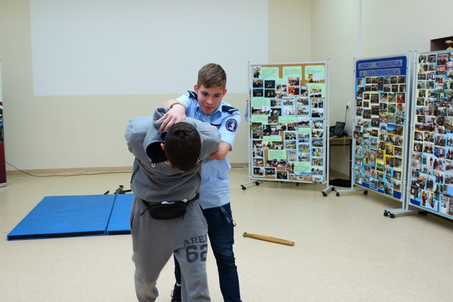 Młodzież pochwaliła się nabytymi umiejętnościami w scence reklamującej profil policyjny w liceum ogólnokształcącym. Starsi strzelcy: Krystian Mieczkowski, Mateusz Wykowski i Łukasz Zysk z OSW – Jednostki Strzeleckiej 1012 w Łomży dali pokaz samoobrony. Ostatnim punktem części artystycznej był występ wokalny uczennicy kl. 2PP – Patrycji Baranowskiej.