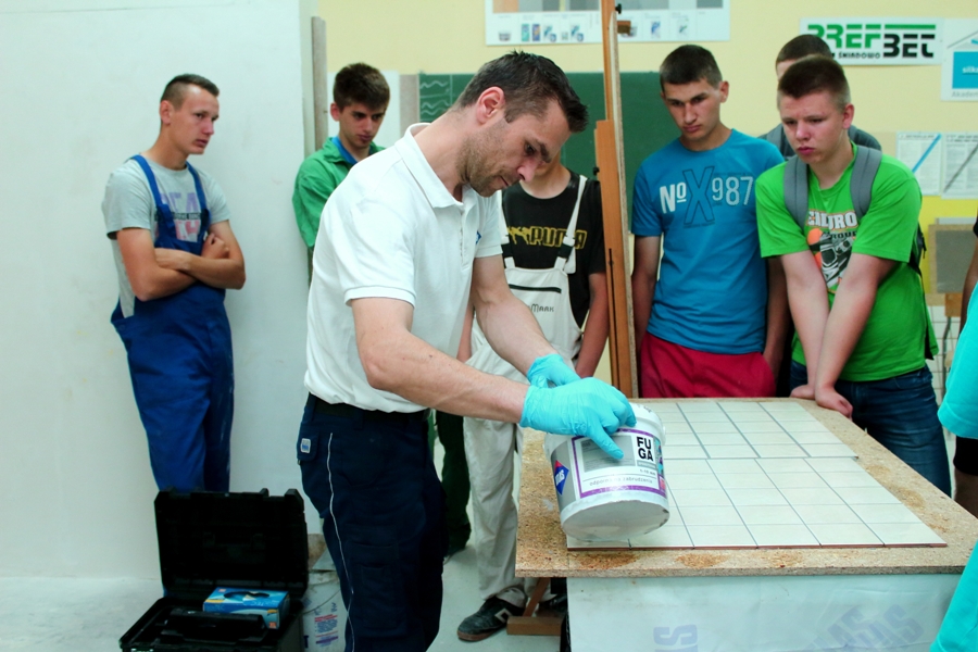 Z Rajskiej Wyspy Smaków gimnazjaliści przenieśli się do pracowni budowlanej, w której zaprezentowano wzorcowe wykonanie budowlanych robót wykończeniowych (malowanie i tapetowanie) oraz pokaz robót posadzkarskich przygotowany przez firmę Atlas. Goście zapoznali się także z ekspozycją pokryć dachowych. Ostatni punkt programu stanowił pokaz Aikido w wykonaniu naszych uczniów we współpracy z panem Wiesławem Czupryńskim.