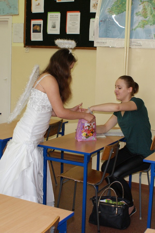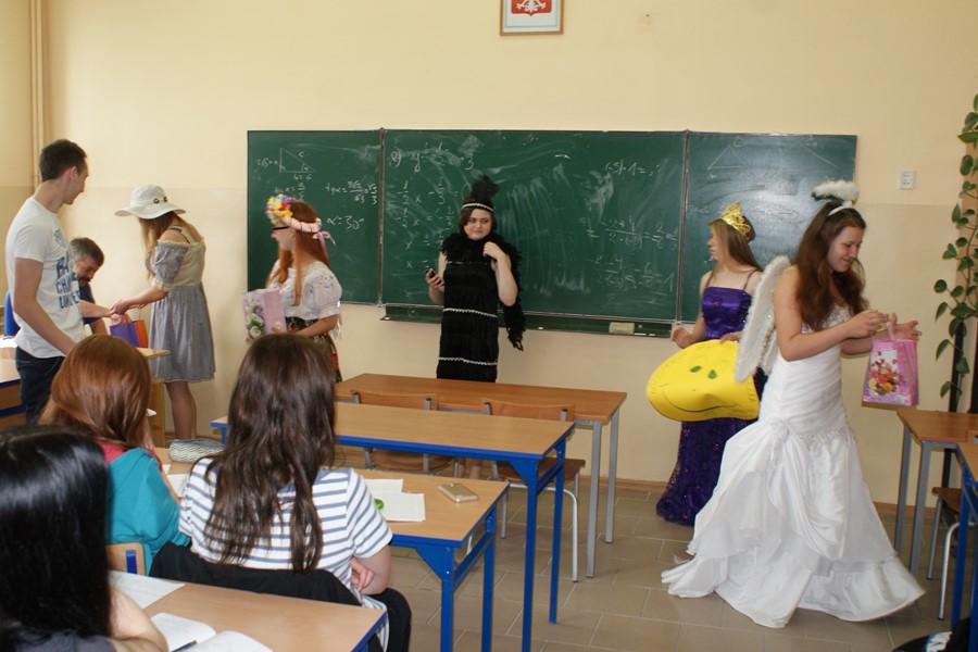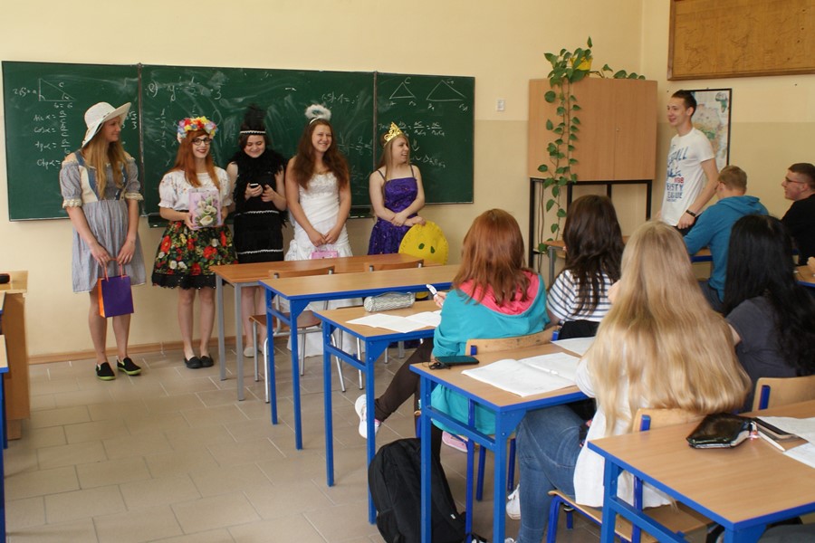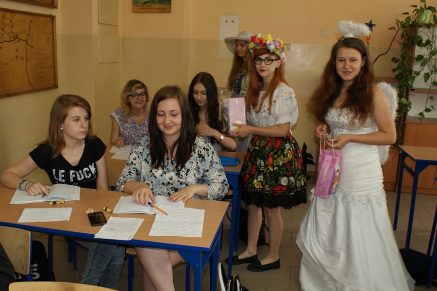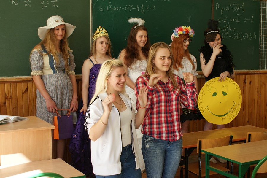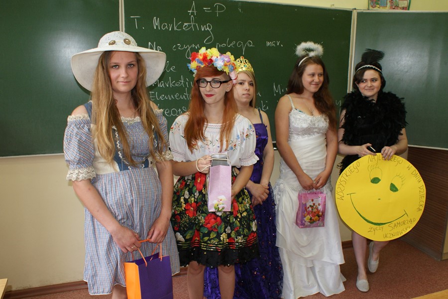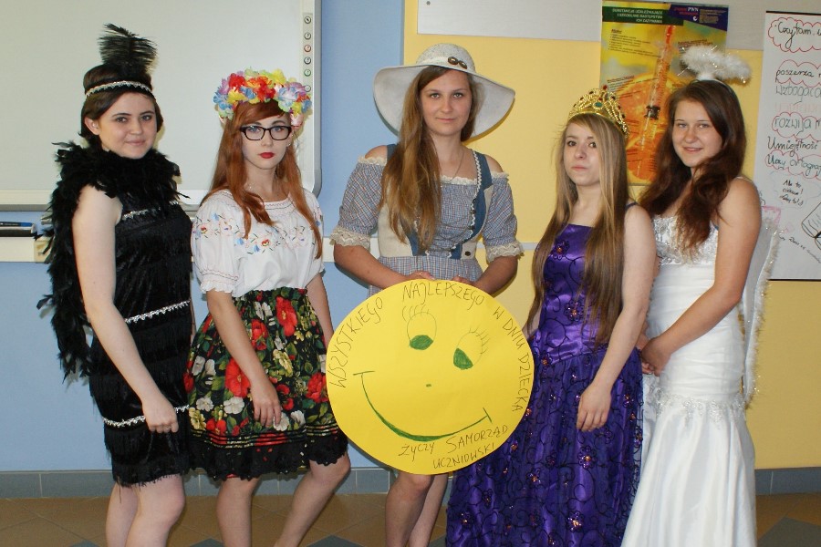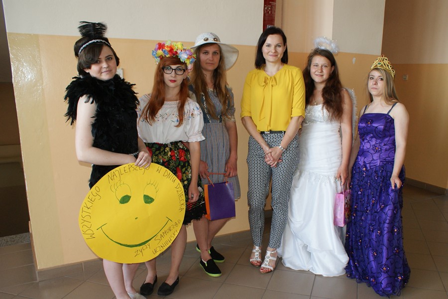 Każdy z nas chciałby czasem wrócić do beztroskiego czasu dzieciństwa, stąd też Samorząd Uczniowski postanowił zaakcentować obchodzony 1 czerwca Dzień Dziecka. Ania Jastrzębska i Natalia Niedźwiedzka z 1AP oraz Kinga Ostrowska, Patrycja Boryszewska i Milena Lemańska z 2TŻ odwiedziły tego dnia wszystkie klasy podczas zajęć lekcyjnych. Przebrane w kolorowe stroje, częstowały wszystkich cukierkami. Trzeba było jednak zasłużyć sobie na słodkości – przedstawiciel klasy miał za zadanie zatańczyć popularne "Kaczuszki" przy dźwiękach tej znanej melodii. Czasem udało się namówić do tańca całą klasę wraz z nauczycielem.