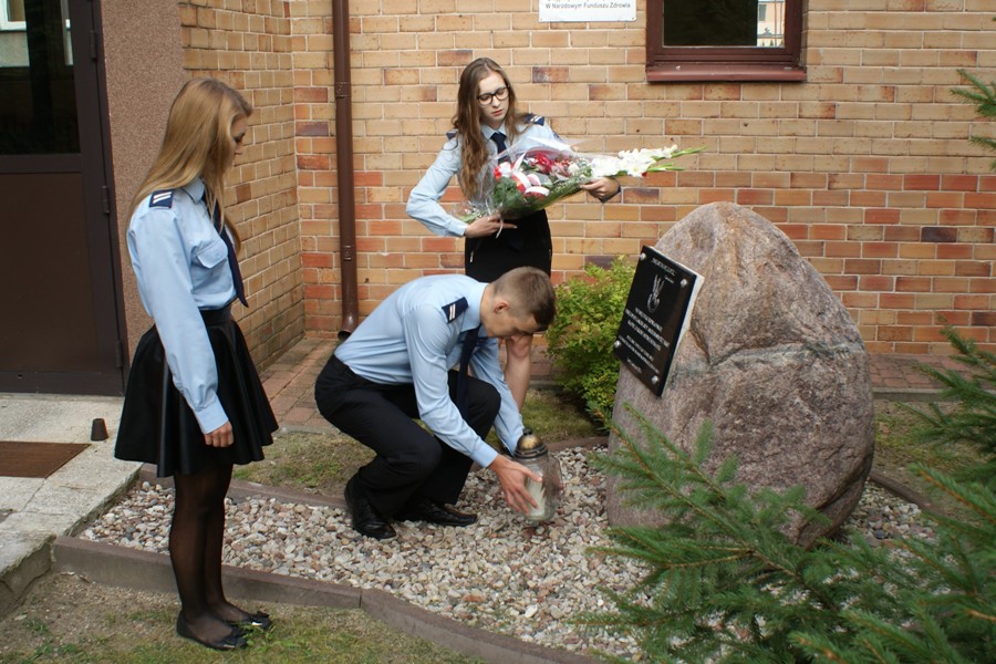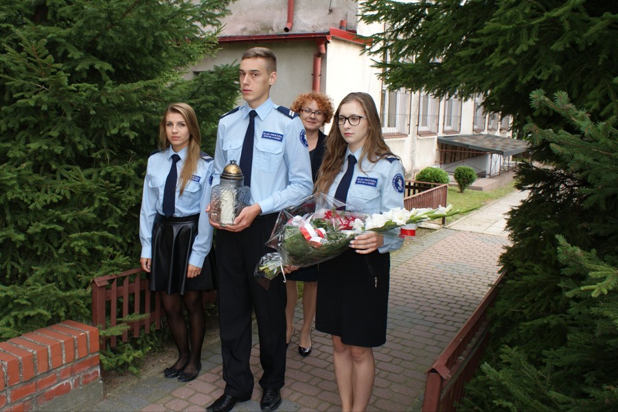 1 września to też rocznica wybuchu II Wojny Światowej, o czym nie wolno zapominać. Pani Elżbieta Wiśniewska w krótkiej prelekcji nawiązała do mijającej 77. rocznicy agresji Niemiec hitlerowskich na Polskę. Wspomniała tych, którym odebrano życie, za to że byli wierni Ojczyźnie i złożonej przysiędze. Wszyscy minutą ciszy uczcili pamięć tych, którzy ginęli, myśląc o wolnej Polsce, a delegacja młodzieży złożyła wiązankę biało-czerwonych kwiatów i zapaliła znicz przed tablicą pamiątkową Szkolnego Miejsca Pamięci.