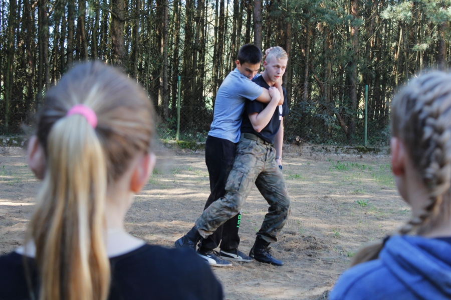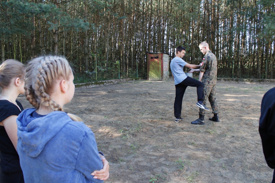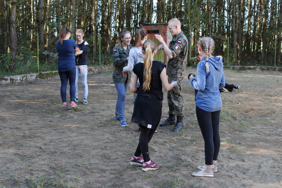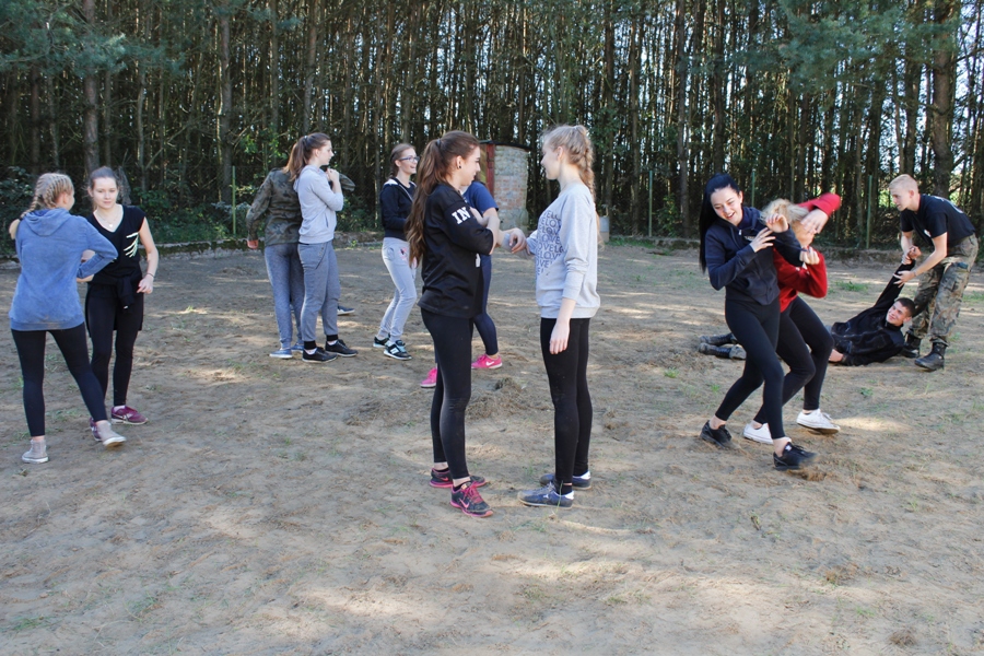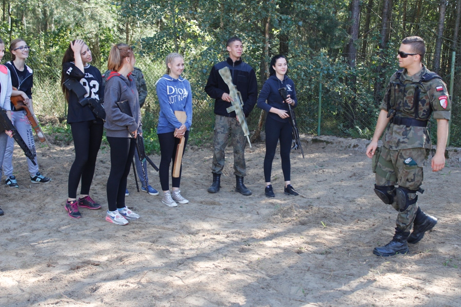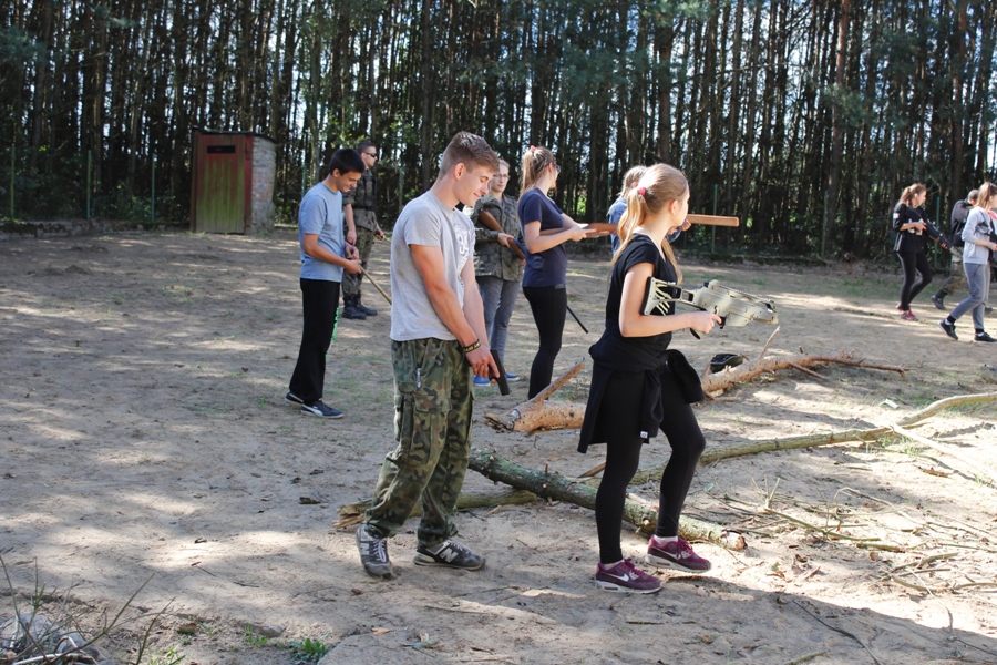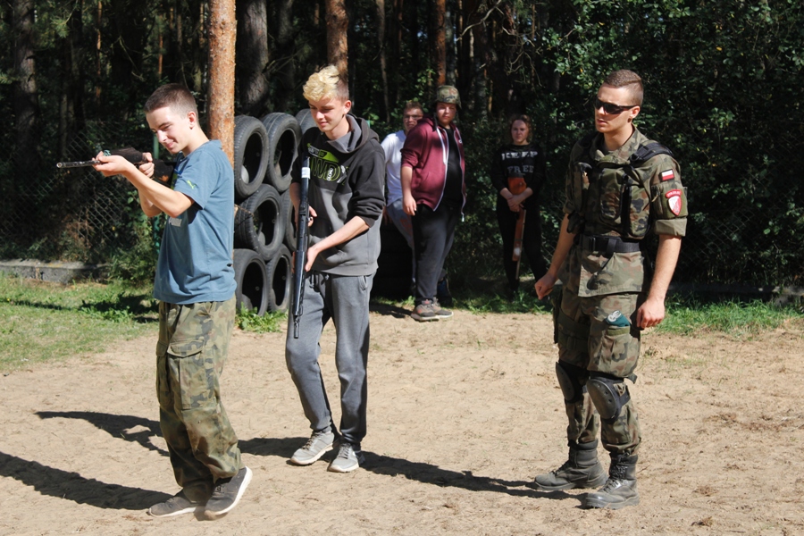 Do ćwiczeń posłużyły atrapy broni. Uczestnicy zajęć mieli też do pokonania tor przeszkód, którego najtrudniejszym elementem był tzw. "tunel szczura". Zajęcia terenowe były okazją aby popracować nad swoją kondycją oraz nabyć umiejętności, które mogą okazać się przydatne dla osób wiążących swoją przyszłość z pracą w służbach mundurowych. Dały uczniom możliwość współdziałania oraz integracji zespołu klasowego. Choć wymagały wysiłku, wszyscy uczestnicy twierdzą zgodnie, że z niecierpliwością czekają na kolejny trening ze Strzelcami.