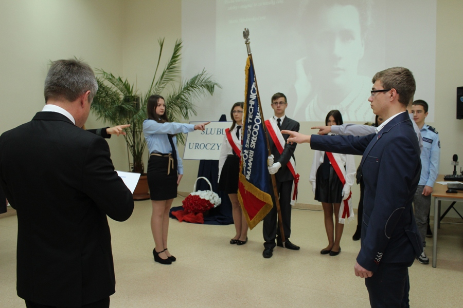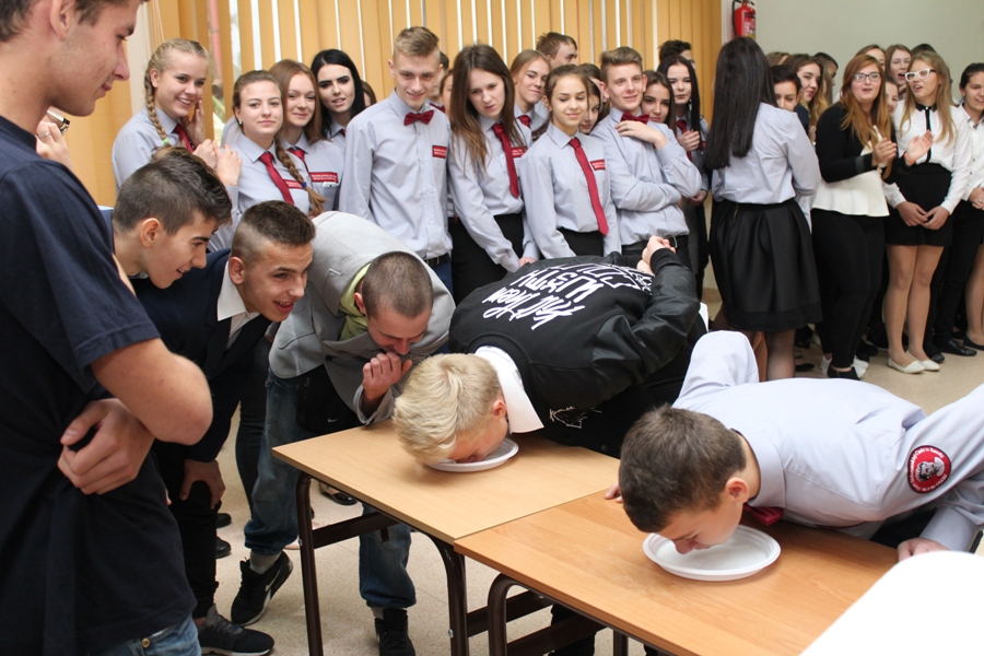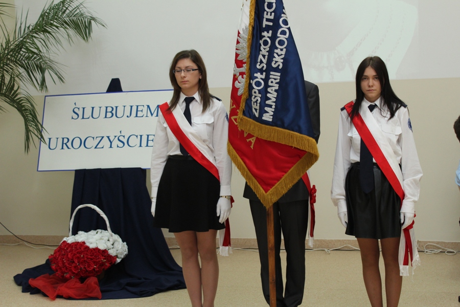 Ślubowanie uczniów klas pierwszych20.10.2016 w naszej szkole odbyła się uroczystość Ślubowania uczniów klas pierwszych. Na Sztandar Szkoły ślubowali uczniowie IV Liceum Ogólnokształcącego w klasach 1 AP o profilu policyjnym oraz 1 PP o profilu psychopedagogicznym, a także uczniowie Technikum Nr 4 kształcący się w zawodach technik budownictwa, technik żywienia i usług gastronomicznych, technik hotelarstwa. W trakcie uroczystości przypomniano sylwetkę patronki szkoły Marii Skłodowskiej-Curie. Po części oficjalnej przedstawiciele Samorządu Uczniowskiego zorganizowali otrzęsinowe gry i zabawy, w których pierwszoklasiści wraz z wychowawcami musieli wykazać się sprawnością i sprytem.