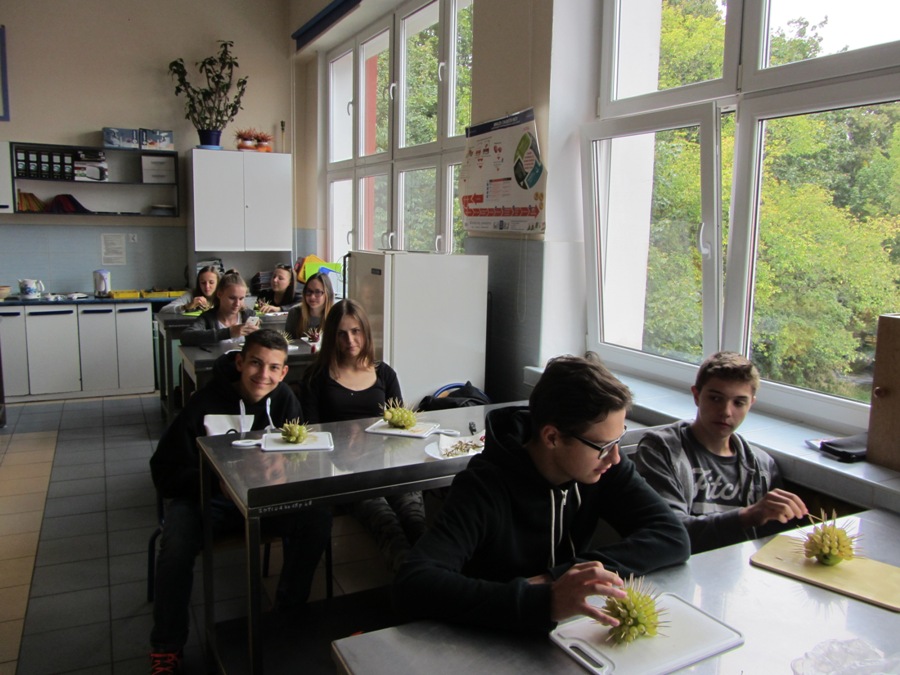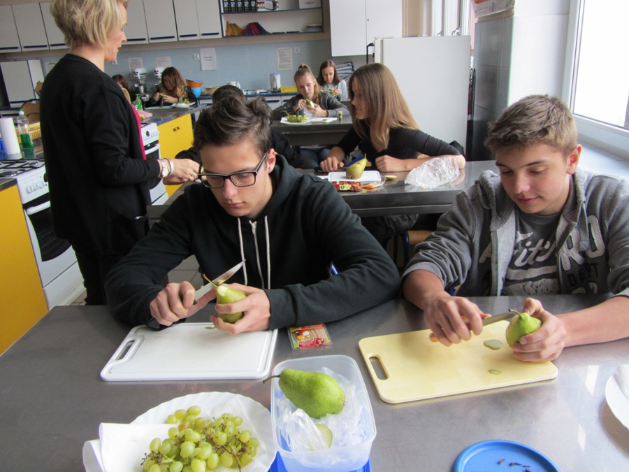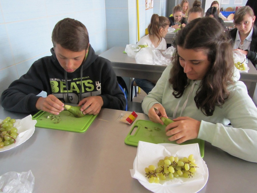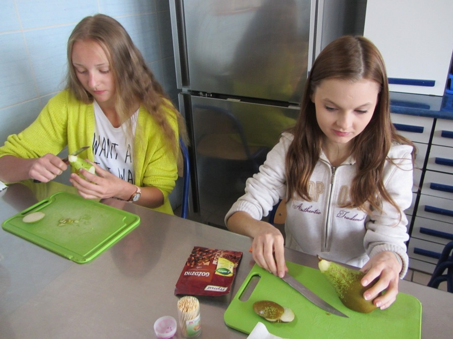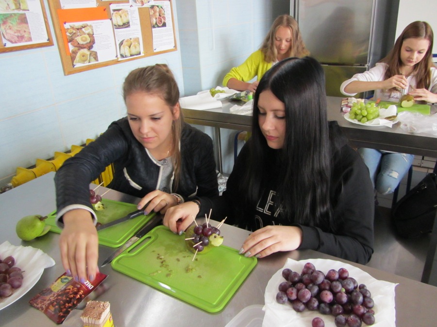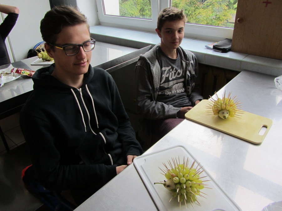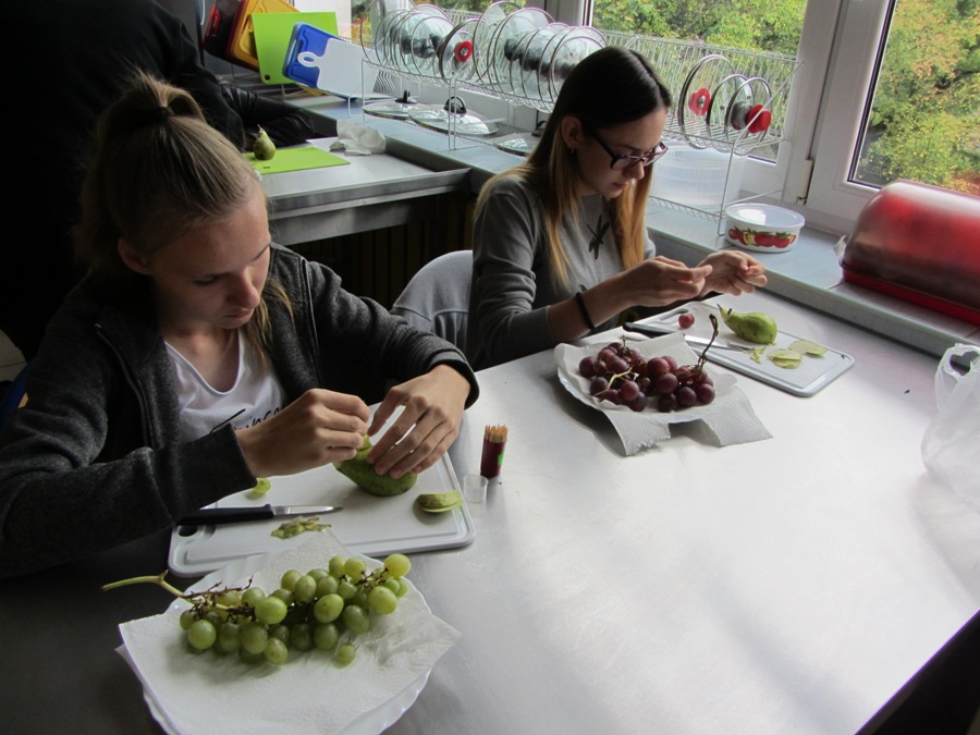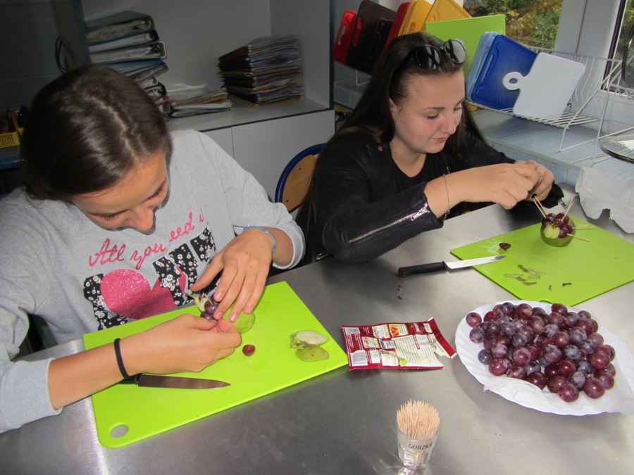 Warsztaty żywienioweCorocznie w naszej szkole przeprowadzana jest seria warsztatów żywieniowych. W tym roku rozpoczęliśmy od zabawy w klasie 1 TŻiUG – „dekoracje na wesoło”. Pod opieką pani Edyty Trzaski i Katarzyny Więsak uczniowie wykonywali proste, ale zabawne dekoracje z owoców. Umiejętności zdobyte na warsztatach uczniowie będą mogli wykorzystywać nie tylko do dekoracji potraw na stołach bankietowych, ale także do dekoracji potraw na uroczystościach rodzinnych.