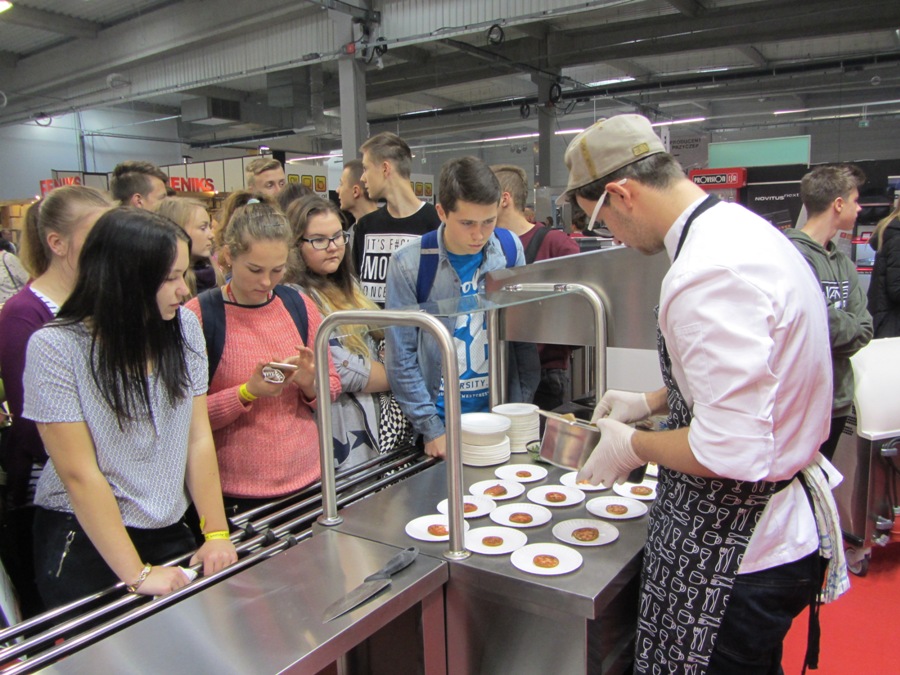 27.10.2016 r. uczniowie 1TŻiUG oraz 2TŻiUG pod opieką Katarzyny Więsak, Edyty Trzaski i Bogusławy Romanowskiej uczestniczyli w Targach Euro Gastro Show. Była to pierwsza edycja tego typu targów gastronomicznych. W specjalnie do tego celu przygotowanych pawilonach ekspozycyjnych odbywały się prezentacje, pokazy i warsztaty. Uczniowie mieli możliwość oglądania stoisk przygotowanych przez znane firmy związane z produkcją żywności i jej konsumpcją. Targi te umożliwiły uczniom zapoznanie się z nowoczesnym sprzętem gastronomicznym oraz jego zastosowaniem. Uczestnicy mogli pod okiem fachowców obserwować wykorzystanie urządzeń a następnie sami obsługiwali nowoczesny sprzęt gastronomiczny przygotowując koleżankom i kolegom np. pyszne koktajle.