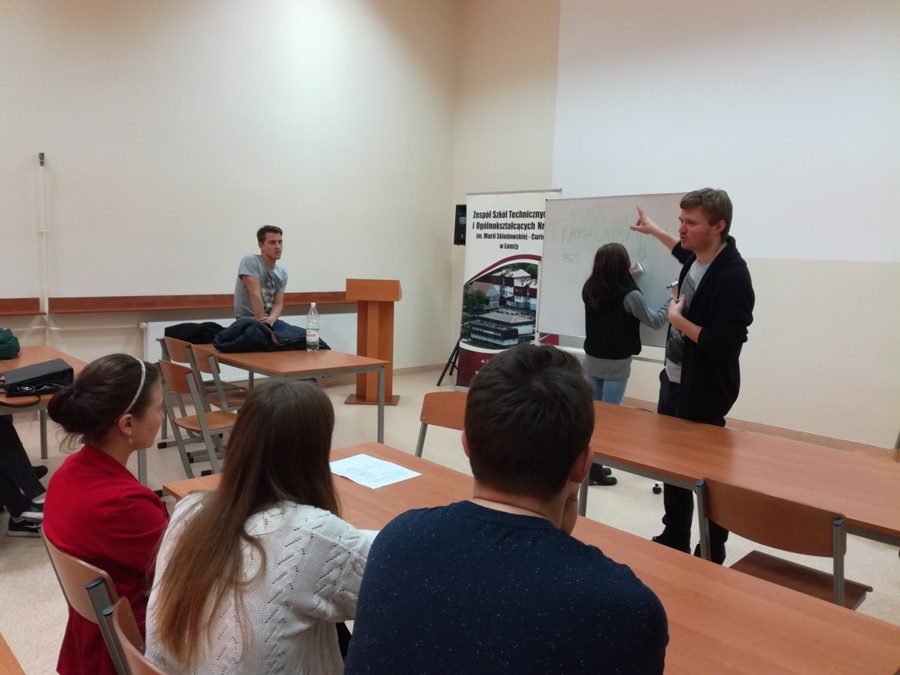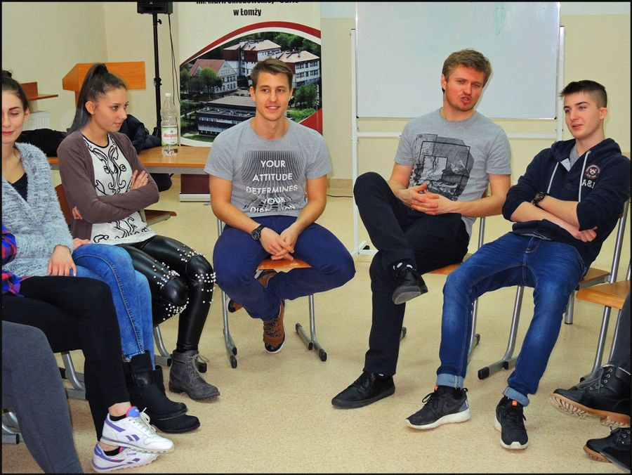 Psychologia w praktyceW piątek 2 grudnia br uczniowie naszego Zespołu uczestniczyli w zajęciach prowadzonych przez koordynatorów projektu Strefa Młodzieży - Szkoły Wyższej Psychologii Społecznej w Warszawie. Zajęcia zostały podzielone na dwa bloki tematyczne. W pierwszym uczniowie wszystkich klas maturalnych dowiedzieli się o tym jak dobrze zaprezentować się na maturze ustnej i na rozmowie kwalifikacyjnej oraz czym się kierować przy wyborze kierunku studiów. Drugi typ zajęć był przeznaczony dla klas psychopedagogicznych realizujących tematy psychologiczne w praktyce i dotyczył technik ułatwiających skuteczne uczenie oraz metod rozwijających motywację do nauki. Podczas zajęć maturzyści oraz   uczniowie   klas   psychopedagogicznych   zdobyli   przydatne