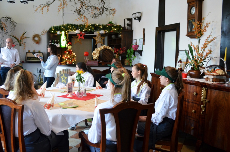 Uczestnicy warsztatów wzbogacili swoje umiejętności praktyczne związane z zawodem oraz poszerzyli wiedzę na temat działalności restauracji, co niewątpliwie pomoże im w rozwoju swoich kompetencji zawodowych. Warsztaty zorganizowały nauczycielki przedmiotów hotelarskich i gastronomicznych – Pani Hanna Bukowska oraz Pani Magdalena Kuczewska.