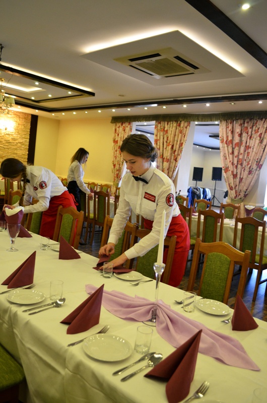 Dn. 06.12.2016 r. odbyły się warsztaty kulinarno-kelnerskie w restauracji "Wiszące Ogrody" w Nowogrodzie. Wzięli w nich udział uczniowie z Technikum Żywienia i Usług Gastronomicznych oraz uczniowie z Technikum Hotelarstwa. Restauracja, w której odbyły się zajęcia wyróżnia się wysokim standardem świadczonych usług oraz profesjonalnym podejściem do klienta. Tematem przewodnim warsztatów była kurpiowska kuchnia regionalna. Grupa uczniów z Technikum Żywienia sporządzała potrawy regionalne: kartacze i pampuchy, natomiast grupa z Technikum Hotelarskiego przygotowywała stoły na przyjęcie okolicznościowe oraz poznała praktyczne zasady obsługi gościa w restauracji.