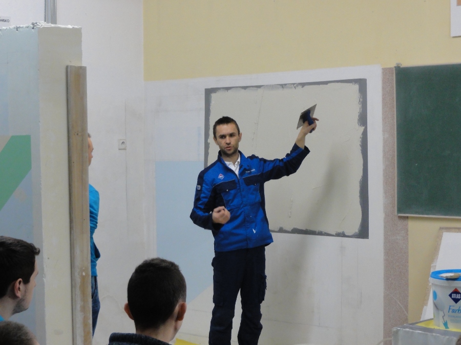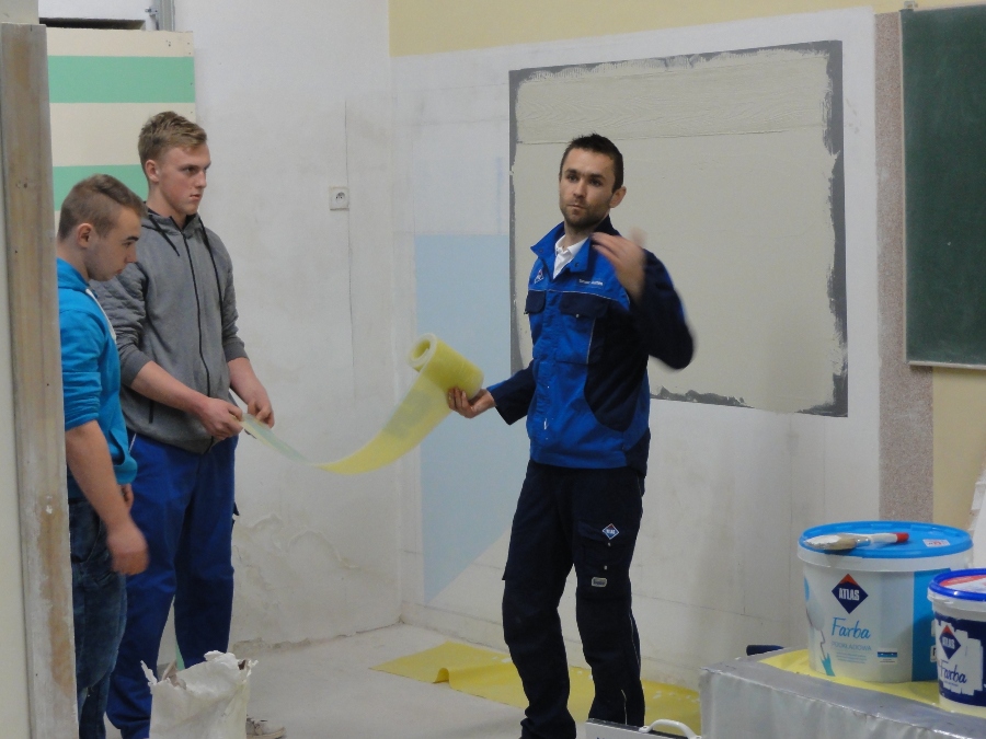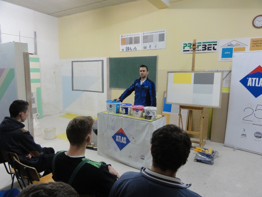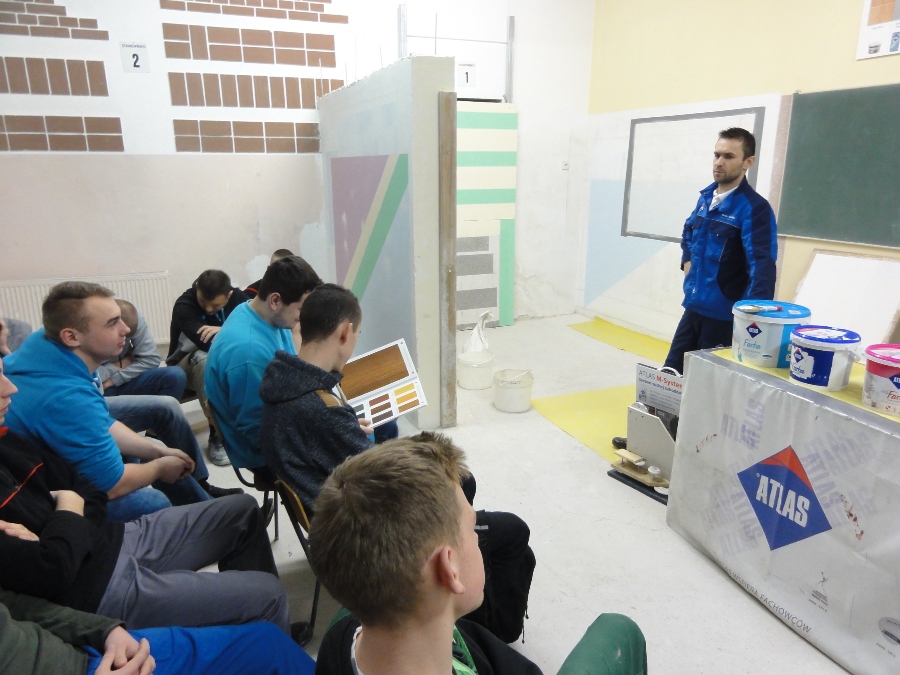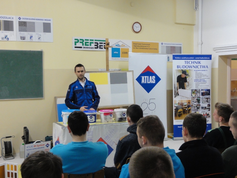 W dniu 16.12.2016r. na terenie naszej szkoły w pracowni budowlanej nr 1 przeprowadzone zostało szkolenie przez producenta materiałów budowlanych firmę ATLAS. Tematem spotkania było zaprezentowanie zastosowania produktów firmy, takich jak: