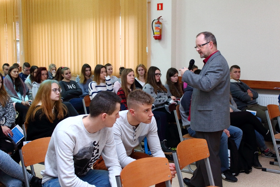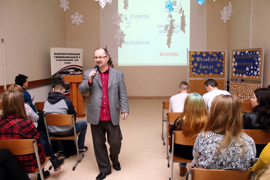 16 grudnia 2016 gościł w naszej szkole przedstawiciel Politechniki Białostockiej. Zapoznał on uczniów klas maturalnych z zasadami rekrutacji, które mają obowiązywać w roku akademickim 2017/2018. Zachęcał maturzystów do udziału w konkursach organizowanych przez uczelnie jako sposobu zdobycia indeksu.