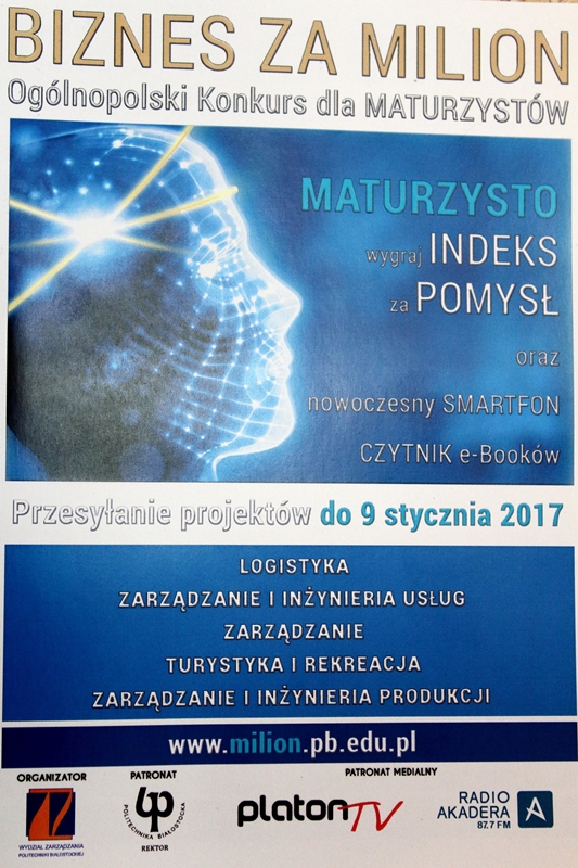 I. BIZNES ZA MILION – www.milion.pb.edu.pl – konkurs zorganizowany przez Wydział Zarządzania