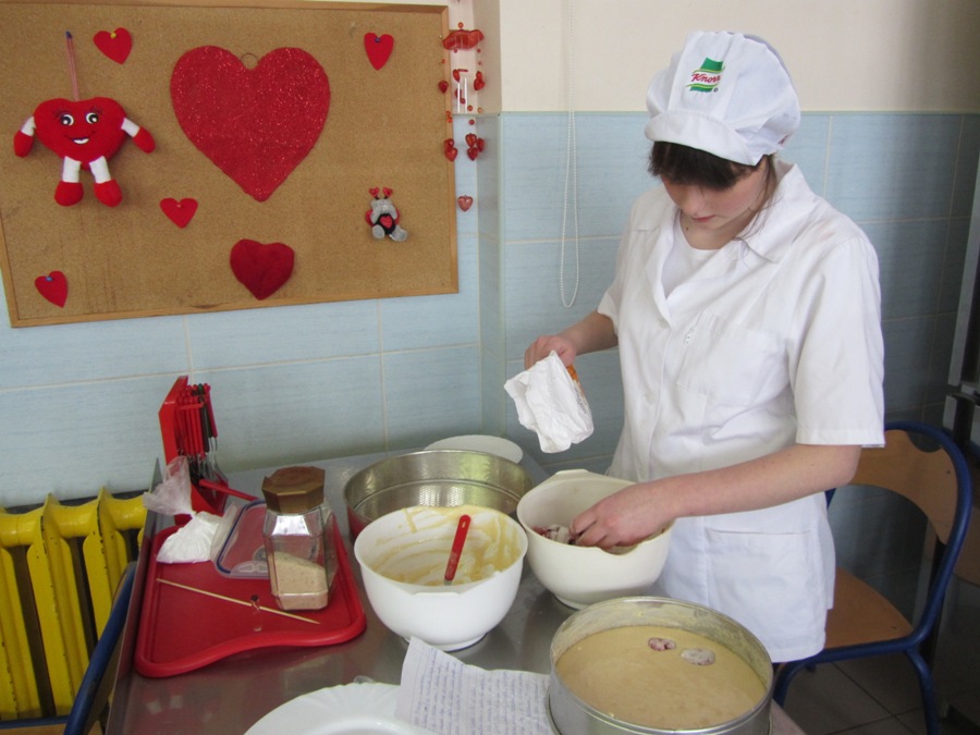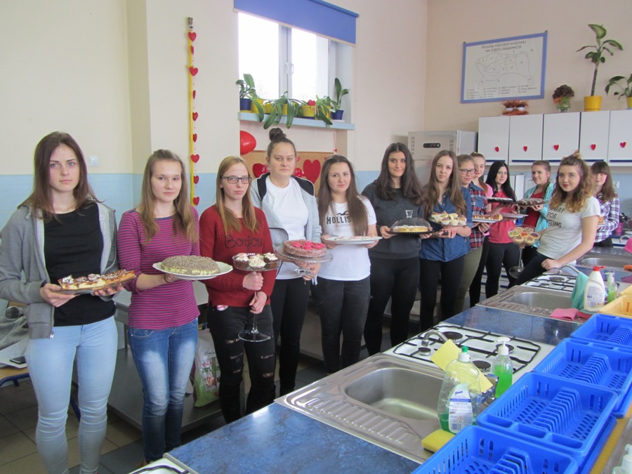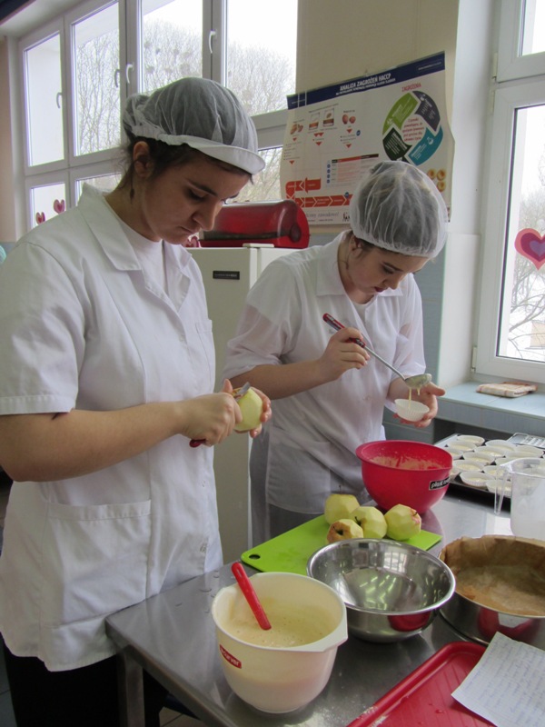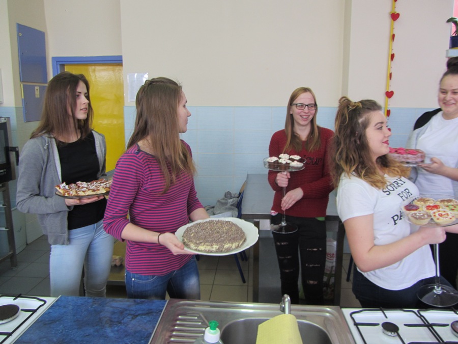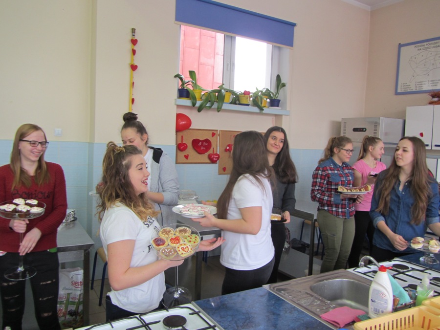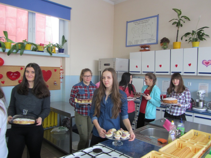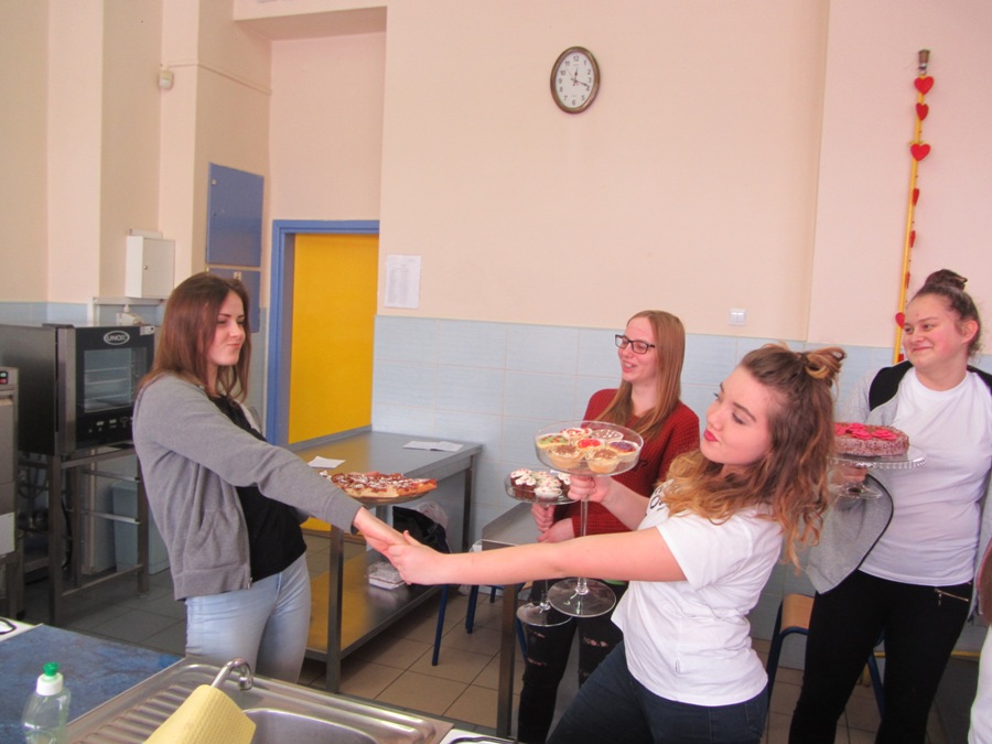 Walentynki na słodko14 lutego, to jak wszyscy wiemy Dzień Zakochanych, ale także dzień miłości w szerokim tego słowa znaczeniu. Każdy przeżywa ten dzień inaczej, ale wszystkim kojarzy się on z radością, uśmiechem, kolorem czerwonym i wizerunkami serduszek. Nam jako technikom żywienia kojarzy się także ze słodyczami i czekoladą. W związku z tym klasa 1 TŻiUG pod opieką pani Katarzyny Więsak, Hanny Bukowskiej i Edyty Trzaski w tym wyjątkowym dniu postanowiła wykonać słodkie wypieki, aby później podzielić się nimi z bliskimi osobami. Każdy uczeń wykonywał wypiek według własnego przepisu i samodzielnie dekorował słodkie cudeńka, które kusiły wyglądem. Zajęcia odbywały się w atmosferze radości i humoru, uwieńczone zostały wspaniałymi efektami pracy - były to torty, ciasta, babeczki i rolady. Ocena organoleptyczna przebiegała w atmosferze walentynkowej, gdzie unosił się dodatkowo zapach czekolady i wypieków. Było wesoło i smacznie!