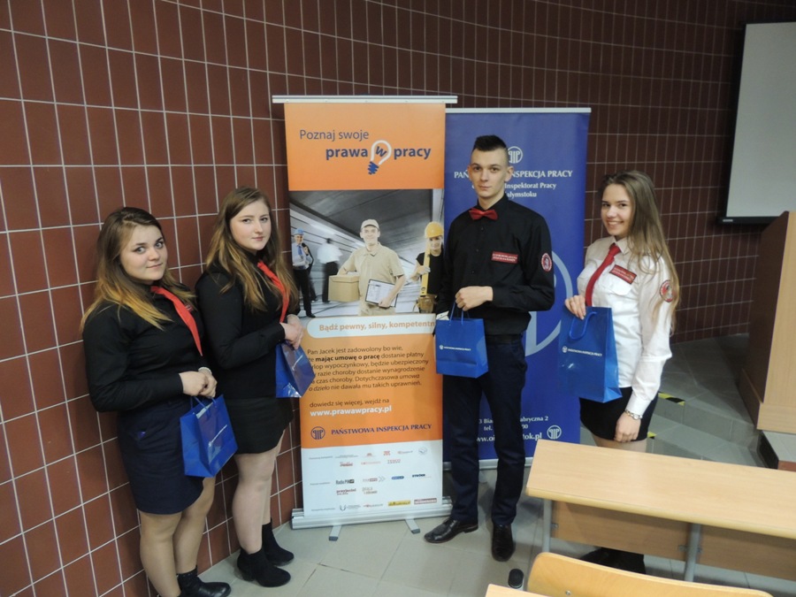 Dnia 24 lutego 2017 r. w auli Politechniki Białostockiej odbył się II etap konkursu wojewódzkiego dla 20 uczestników wyłonionych z etapu szkolnego. Wśród najlepszej dwudziestki, która wywalczyła awans do etapu regionalnego naszą szkołę reprezentowali: Katarzyna Kryszczyńska, Ewa Skowronek, Patryk Kadłubowski z klasy 3 AH oraz Katarzyna Plona z klasy 2 AH. Uczniowie mieli za zadanie udzielenie pisemnej odpowiedzi na 20 pytań, a następnie najlepsza dziesiątka udzielała odpowiedzi ustnych przed komisją konkursową na wylosowane pytanie. Do ścisłego finału czwartego regionalnego konkursu „Poznaj swoje prawa w pracy” zakwalifikowała się Katarzyna Plona z 2 AH, zajmując IX miejsce.