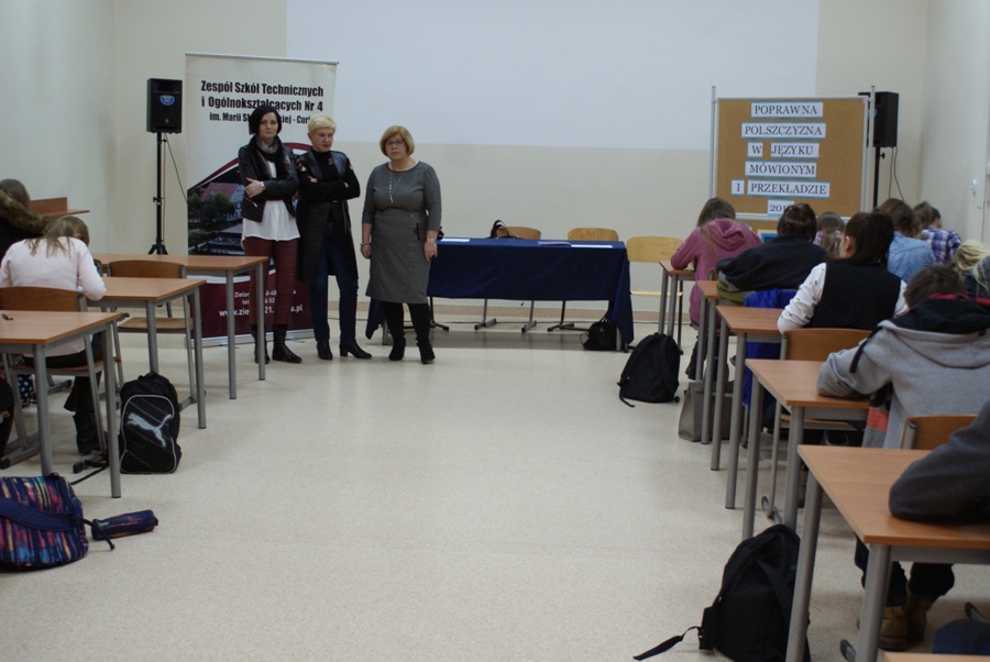W dniu 23 lutego 2017 roku w ZSTiO Nr 4 odbyła się czwarta edycja konkursu poprawnej polszczyzny pod hasłem „Poprawna polszczyzna w języku mówionym i przekładzie”. Konkurs przeprowadziły panie: Lidia Janowicz, Jolanta Wilczewska i Anna Krzewska.