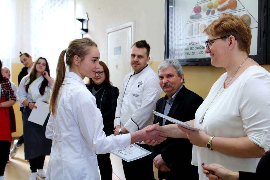 Panel szkoleniowy zwieńczyła prezentacja oraz degustacja potraw przygotowanych podczas warsztatów, a także wręczenie uczniom certyfikatów uczestnictwa w warsztatach. Dla uczniów Technikum Hotelarskiego, którzy zajęli się obsługą prezentacji, była to okazja do ćwiczenia swoich umiejętności praktycznych.
