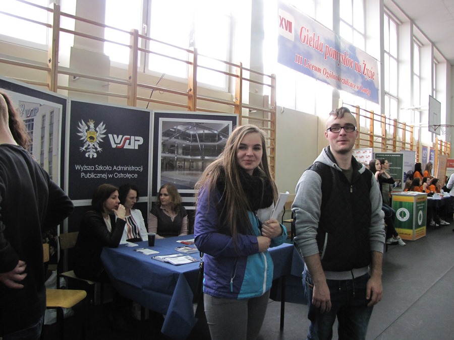 Giełda pomysłów na życieDnia 15 marca klasy maturalne z naszej szkoły uczestniczyły w III LO w Łomży w ,,Giełdzie pomysłów na życie”. Do szkoły zjechali przedstawiciele wielu szkół wyższych z naszego regionu i kraju. Młodzież miała okazję zapoznać się z ofertą edukacyjną ponad 30 szkół wyższych i zaplanować swoją przyszłość.