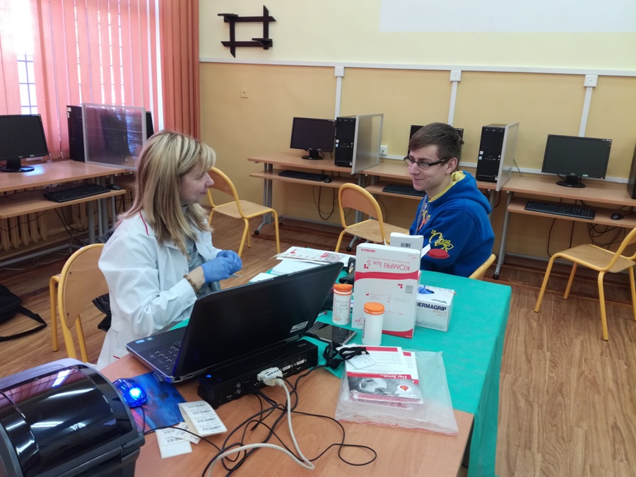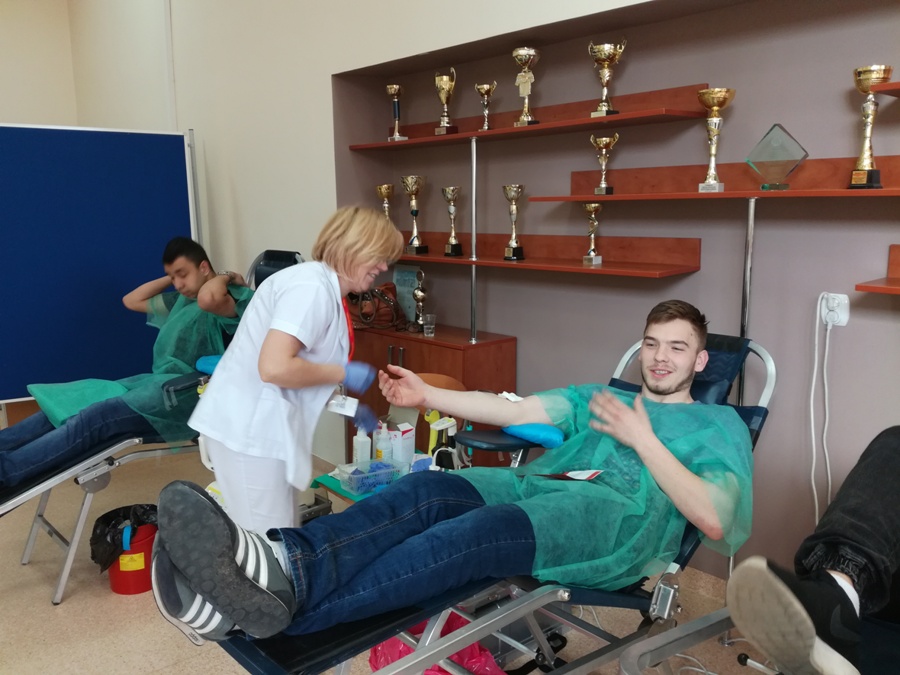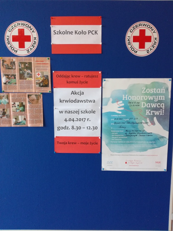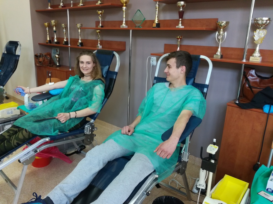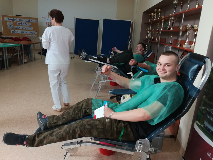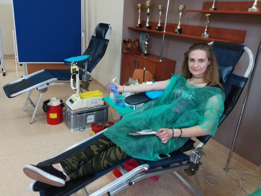 Krwiodawstwo - ruch ludzi takich jak Ty4 kwietnia w naszej szkole została przeprowadzona akcja honorowego oddawania krwi. Została ona poprzedzona promocją krwiodawstwa i spotkała się z wielkim zainteresowaniem uczniów. Mogli do niej przystąpić wyłącznie uczniowie pełnoletni. Zgłosiło się 46 chętnych, z czego w wyniku rekrutacji zakwalifikowano 40 osób. Procedura oddawania krwi jest bardzo restrykcyjna lecz ochotnicy cierpliwie i z wielkim zaangażowaniem poddawali się jej wymogom wiedząc, że ratują komuś zdrowie a nawet życie. W sumie uczestnicy akcji oddali 18 litrów krwi i prawie wszyscy zadeklarowali swój udział w kolejnej edycji, która zaplanowana jest na czerwiec. Świadomość i dojrzała postawa naszych młodych krwiodawców jest doskonałym dowodem na wrażliwość społeczną oraz bezinteresowność młodych ludzi i zasługuje na najwyższy szacunek. Akcję przeprowadził zespół medyczny Terenowego Oddziału Regionalnego Centrum Krwiodawstwa i Krwiolecznictwa w Łomży we współpracy z B. Romanowską i J. Chojnowską