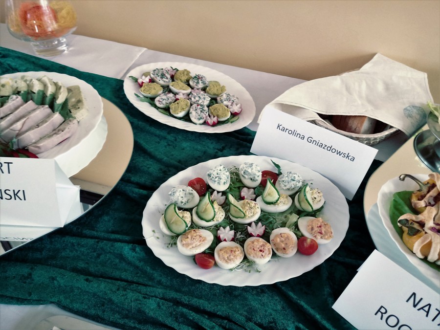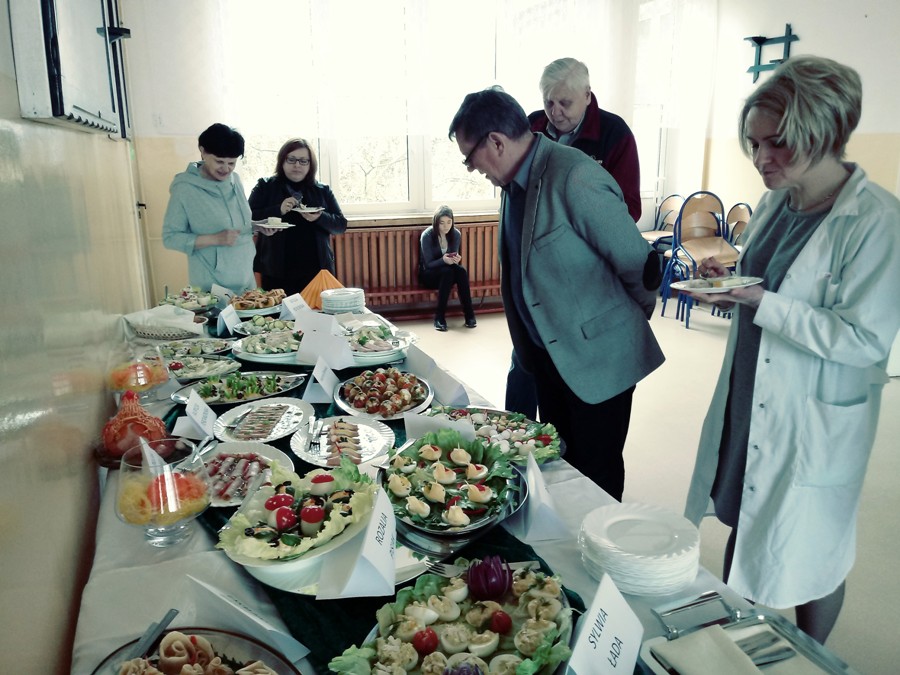 W dniu 6 kwietnia 2017 roku uczniowie kl. 2TŻiUG w ramach zajęć praktycznych przygotowali stół obfitujący w wielkanocne smakołyki. „Staropolskim obyczajem było dużo szynki z jajem, dużo jajek kolorowych..”. Zakąski zaprezentowane przez młodzież były pięknie podane i bardzo smaczne.