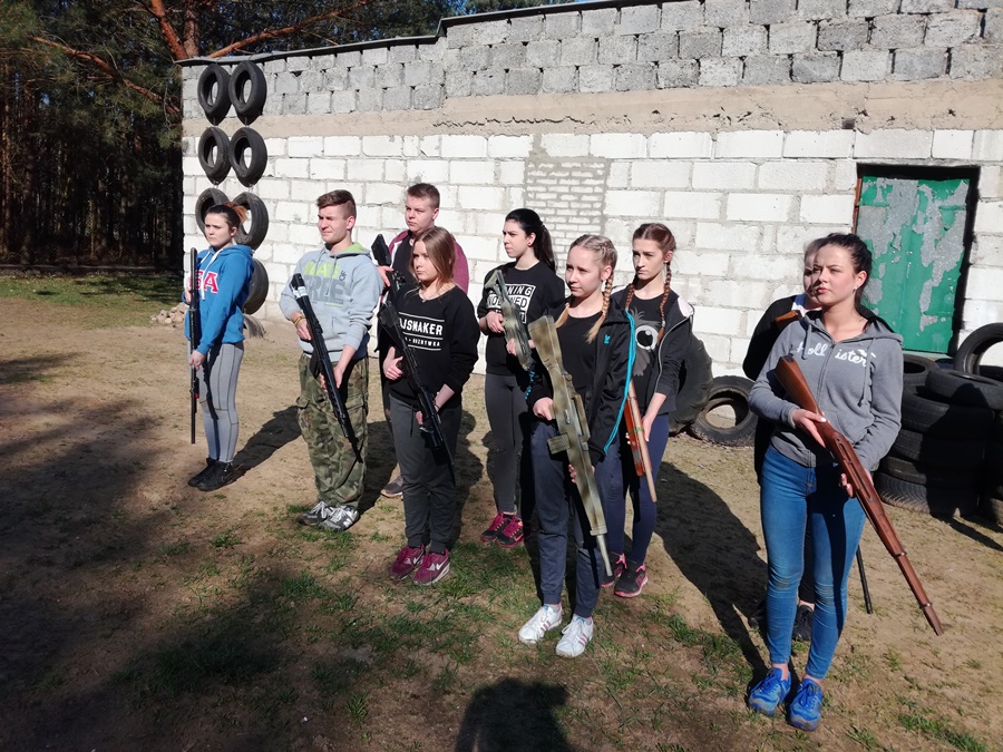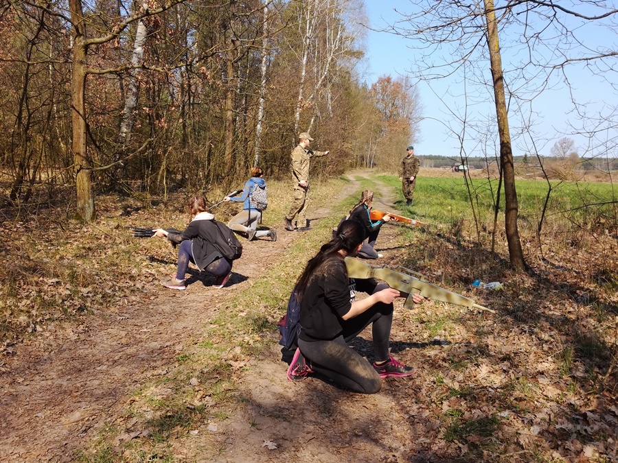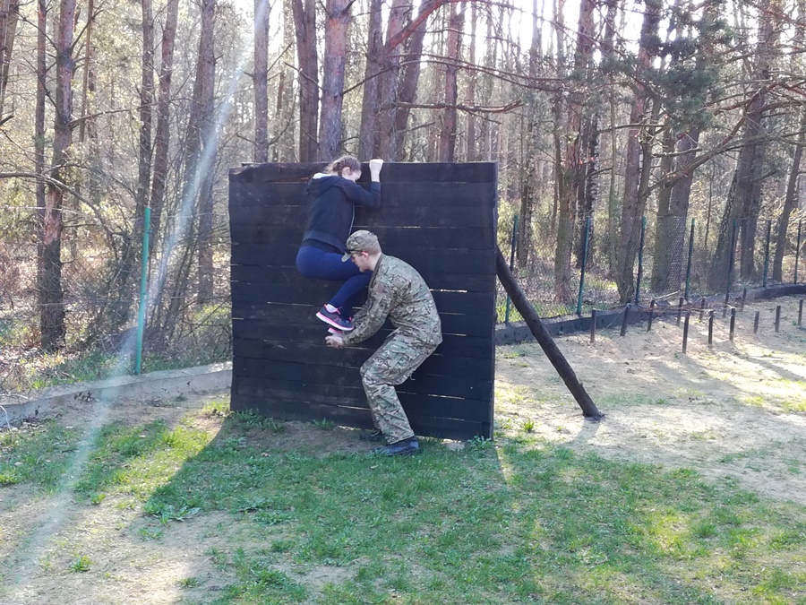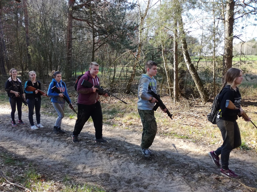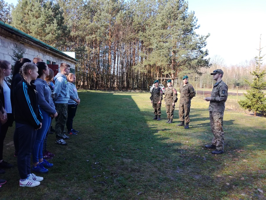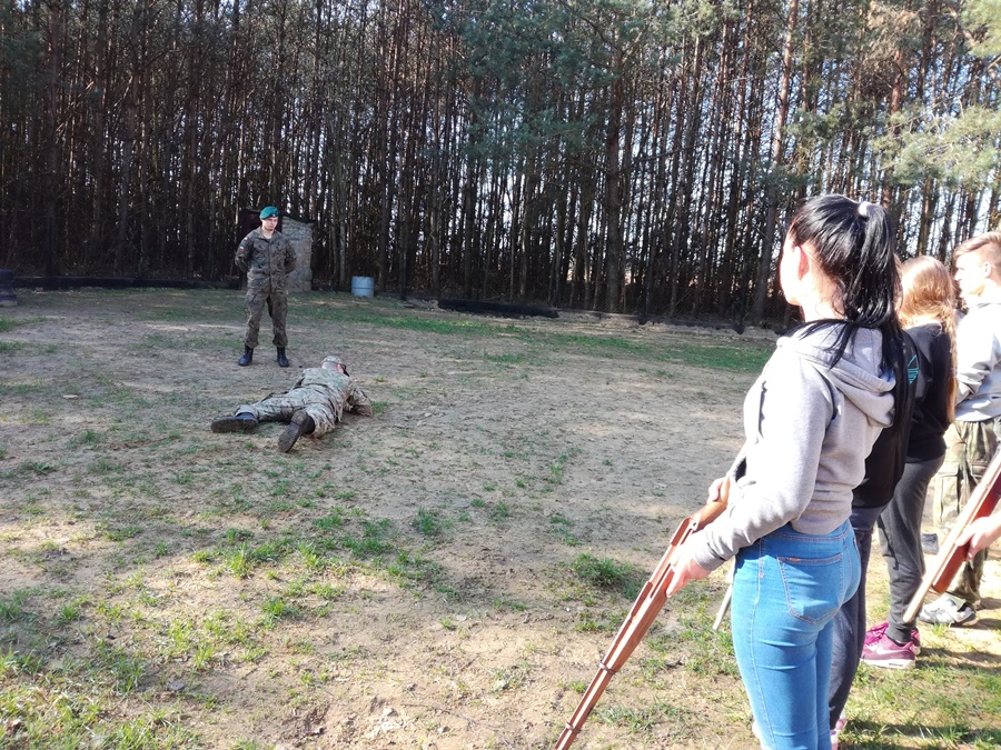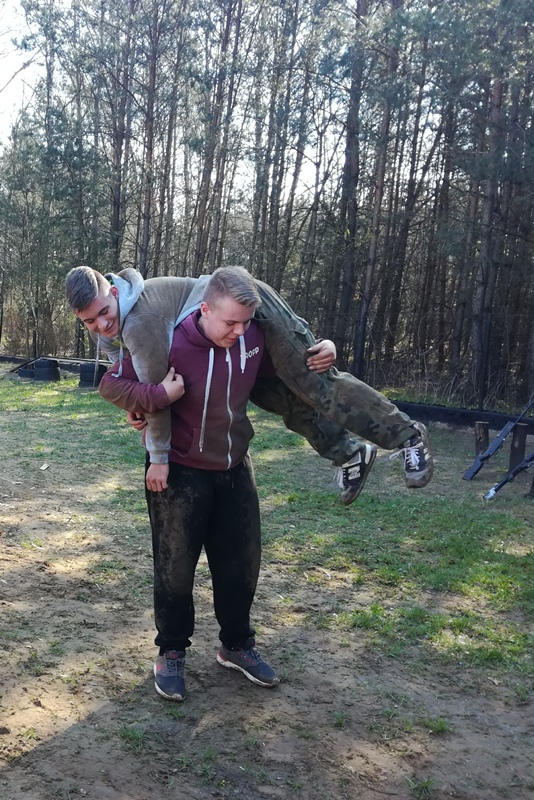 Wiosenne zajęcia terenowe ze Strzelcami dla uczniów klas policyjnych5 kwietnia 2017r. grupa uczniów z klas 1AP i 2AP o profilu służba w policji spędziła dzień na ćwiczeniach terenowych ze Strzelcami z O.S.W. Związku Strzeleckiego "Strzelec" Jednostka Strzelecka 1012 im. 33. Pułku Piechoty Ziemi Łomżyńskiej. Były to kolejne tego typu zajęcia, odbywające się w ramach współpracy między szkołą i Jednostką Strzelecką 1012. Podczas całodziennych zajęć terenowych uczniowie doskonalili swoją formę fizyczną, mierząc się z torem przeszkód, a także ćwiczyli różne umiejętności: czołganie się, ewakuację rannych z pola walki, udzielanie pierwszej pomocy oraz techniki poruszania się w terenie. Zajęcia zakończyły się wspólnym ogniskiem. Były atrakcyjną forma spędzenia dnia inaczej niż w szkolnej ławce, jak również okazją do integracji grupy. Zajęcia terenowe ze Strzelcami z JS 1012 odbyły się z inicjatywy p. A. Ulińskiej.