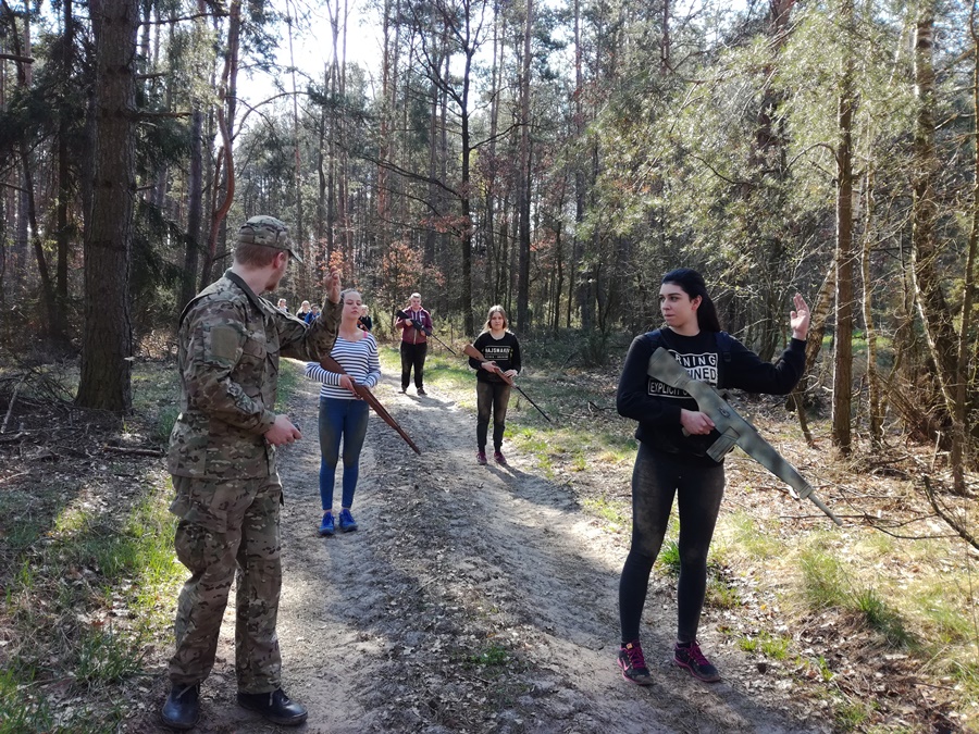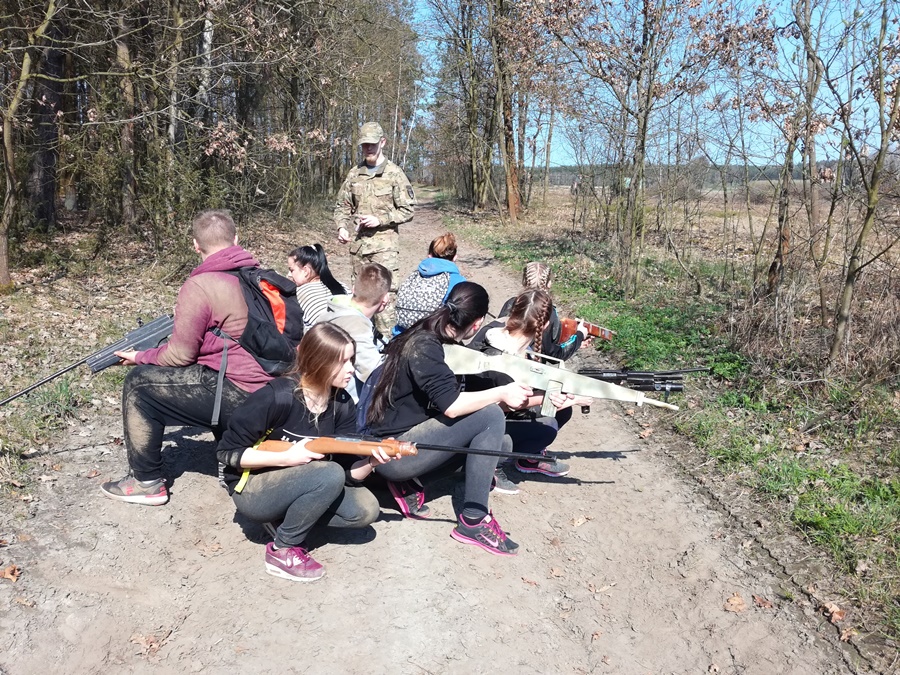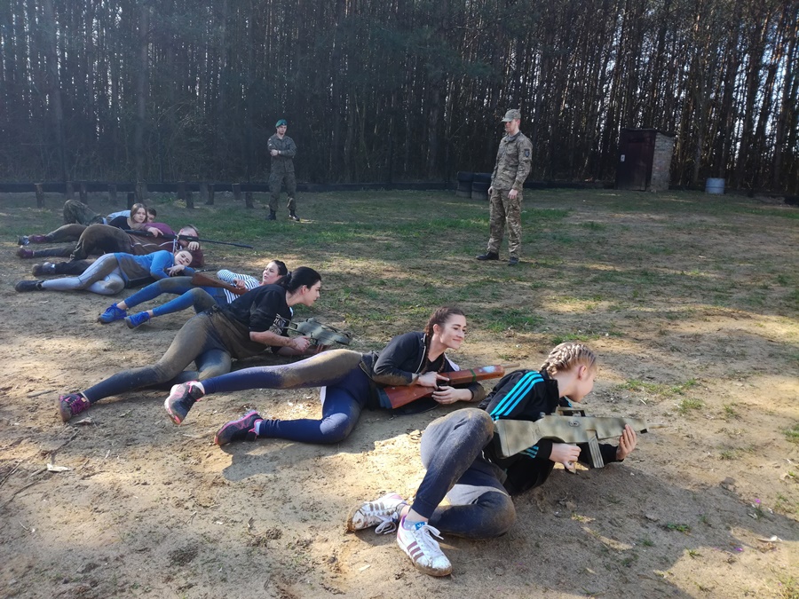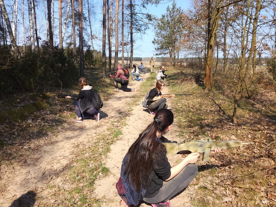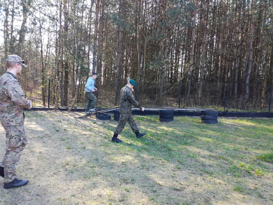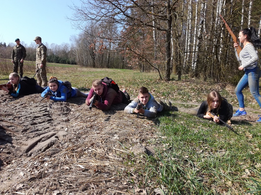 Wiosenne zajęcia terenowe ze Strzelcami dla uczniów klas policyjnych5 kwietnia 2017r. grupa uczniów z klas 1AP i 2AP o profilu służba w policji spędziła dzień na ćwiczeniach terenowych ze Strzelcami z O.S.W. Związku Strzeleckiego "Strzelec" Jednostka Strzelecka 1012 im. 33. Pułku Piechoty Ziemi Łomżyńskiej. Były to kolejne tego typu zajęcia, odbywające się w ramach współpracy między szkołą i Jednostką Strzelecką 1012. Podczas całodziennych zajęć terenowych uczniowie doskonalili swoją formę fizyczną, mierząc się z torem przeszkód, a także ćwiczyli różne umiejętności: czołganie się, ewakuację rannych z pola walki, udzielanie pierwszej pomocy oraz techniki poruszania się w terenie. Zajęcia zakończyły się wspólnym ogniskiem. Były atrakcyjną forma spędzenia dnia inaczej niż w szkolnej ławce, jak również okazją do integracji grupy. Zajęcia terenowe ze Strzelcami z JS 1012 odbyły się z inicjatywy p. A. Ulińskiej.