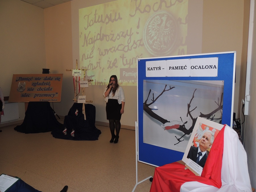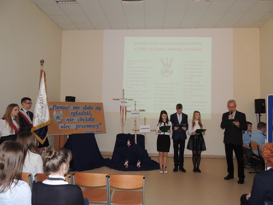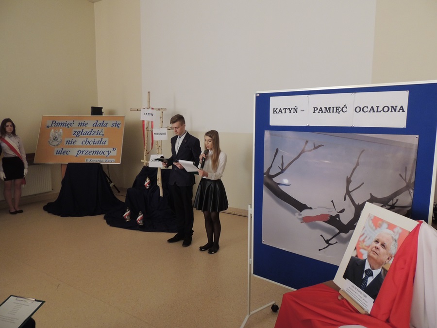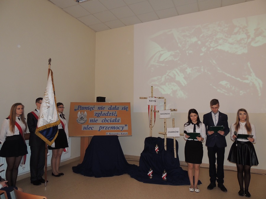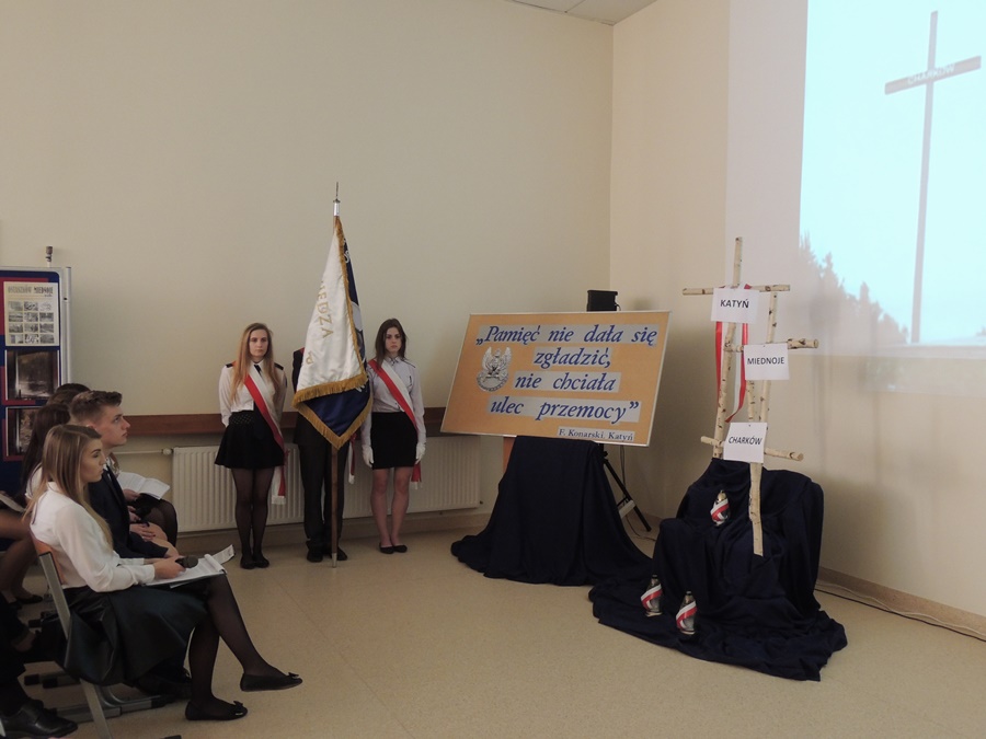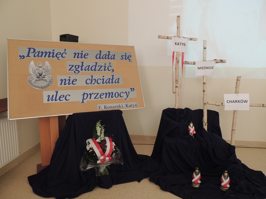W dn. 10.04. 2017 r w naszej szkole odbyła się po raz kolejny uroczystość związana ze świętem państwowym obchodzonym w dn. 13 kwietnia w celu oddania hołdu ofiarom zbrodni katyńskiej. Inicjatorami uroczystości byli nauczyciele: Elżbieta Wiśniewska, Jolanta Chojnowska, Wiesław Czupryński. „Dzień Pamięci Ofiar Zbrodni Katyńskiej” obchodzony jest w rocznicę opublikowania przez Niemców w 1943 r. informacji o odkryciu w Rosji masowych grobów oficerów Wojska Polskiego.
