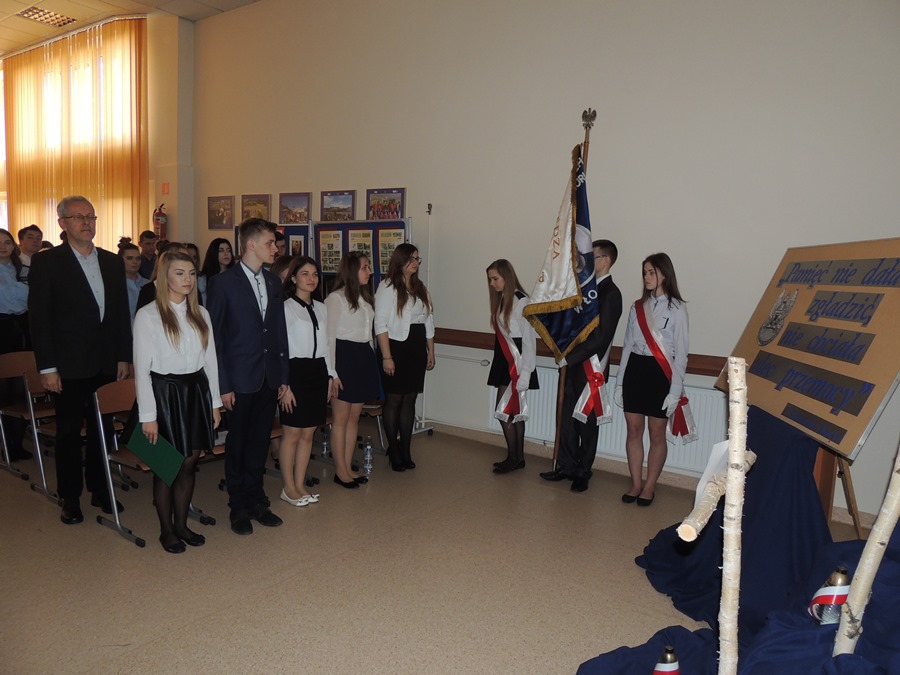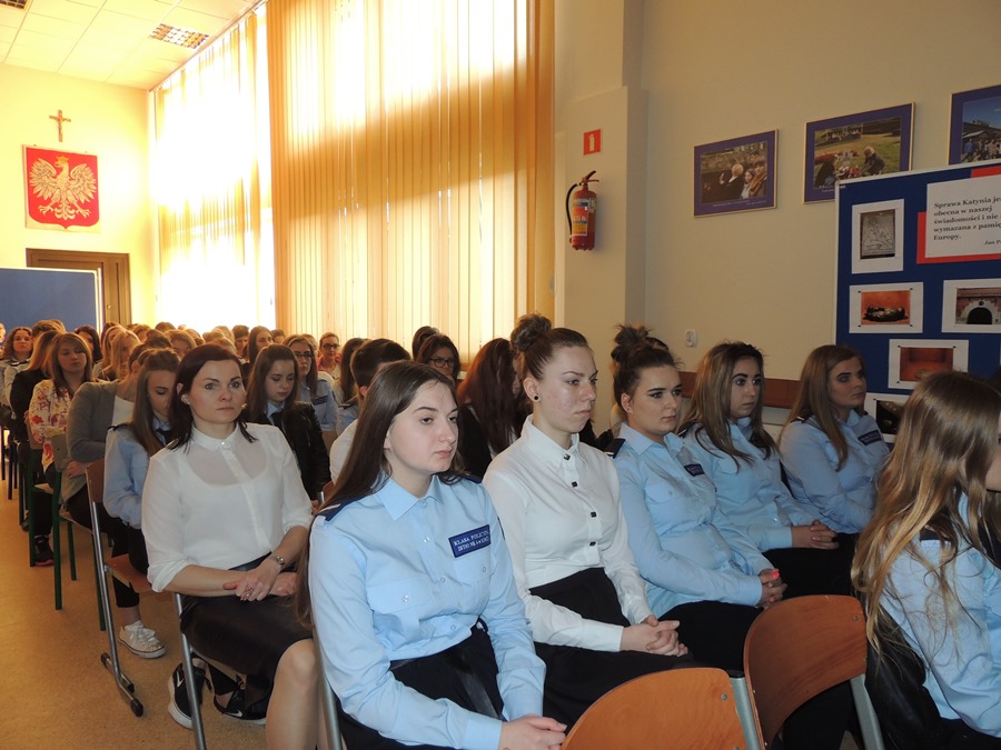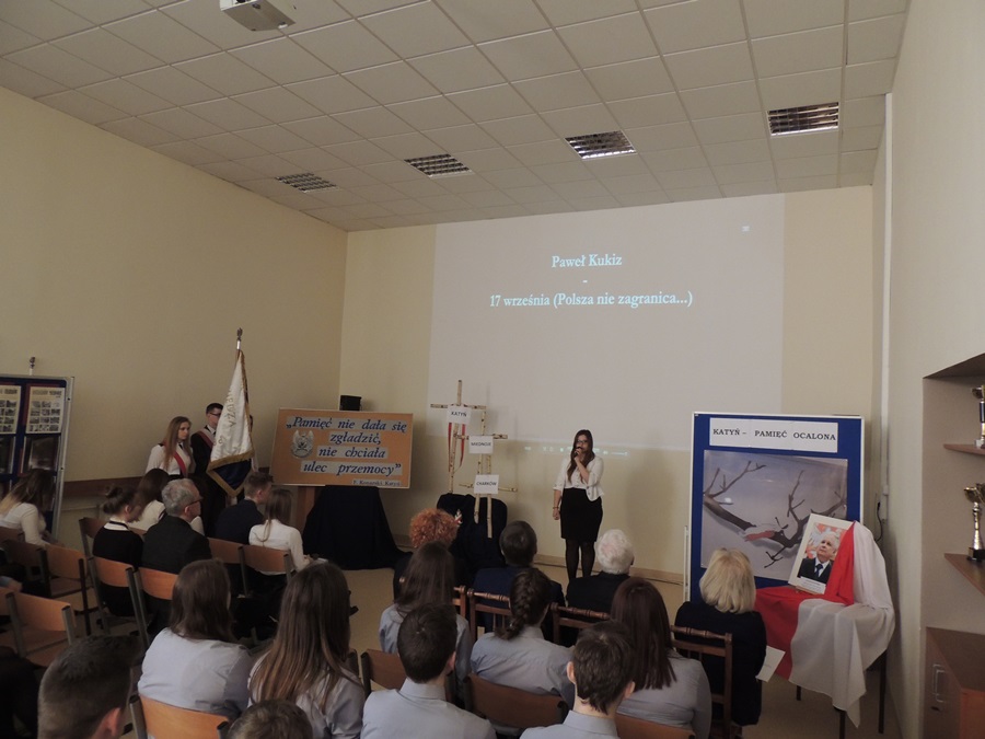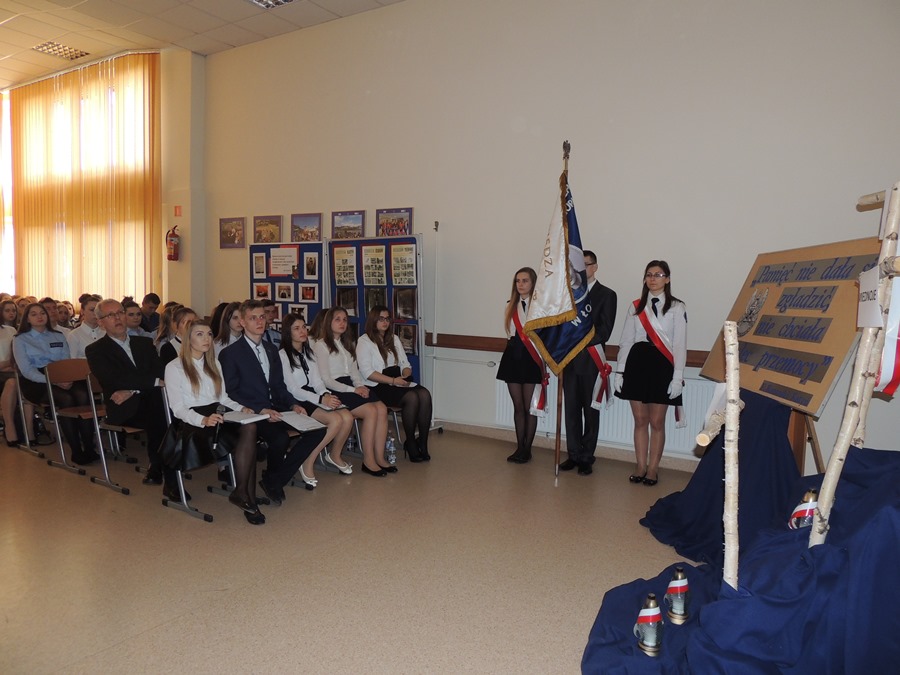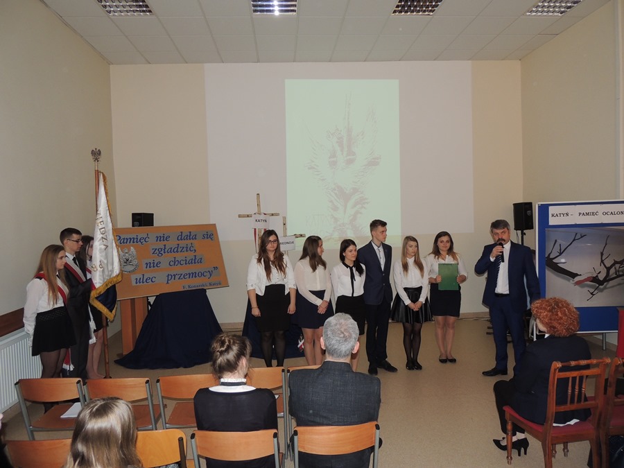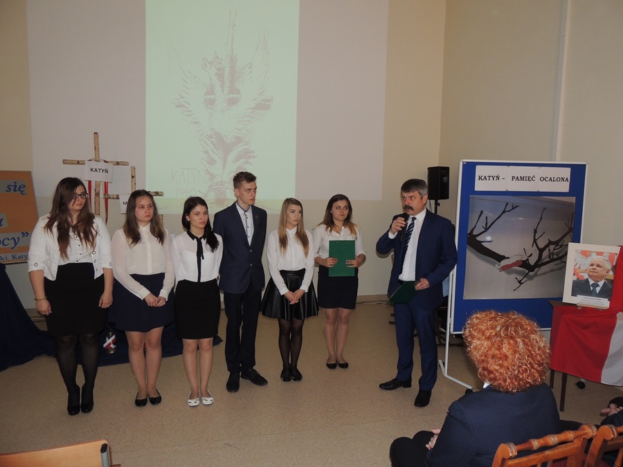 W dn. 10.04. 2017 r w naszej szkole odbyła się po raz kolejny uroczystość związana ze świętem państwowym obchodzonym w dn. 13 kwietnia w celu oddania hołdu ofiarom zbrodni katyńskiej. Inicjatorami uroczystości byli nauczyciele: Elżbieta Wiśniewska, Jolanta Chojnowska, Wiesław Czupryński. „Dzień Pamięci Ofiar Zbrodni Katyńskiej” obchodzony jest w rocznicę opublikowania przez Niemców w 1943 r. informacji o odkryciu w Rosji masowych grobów oficerów Wojska Polskiego.