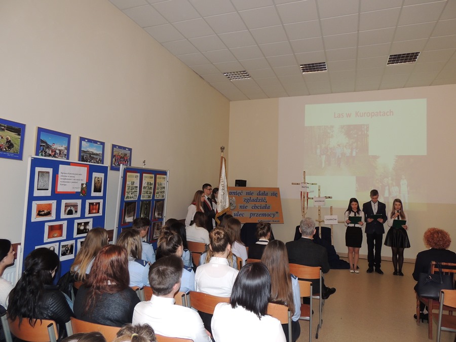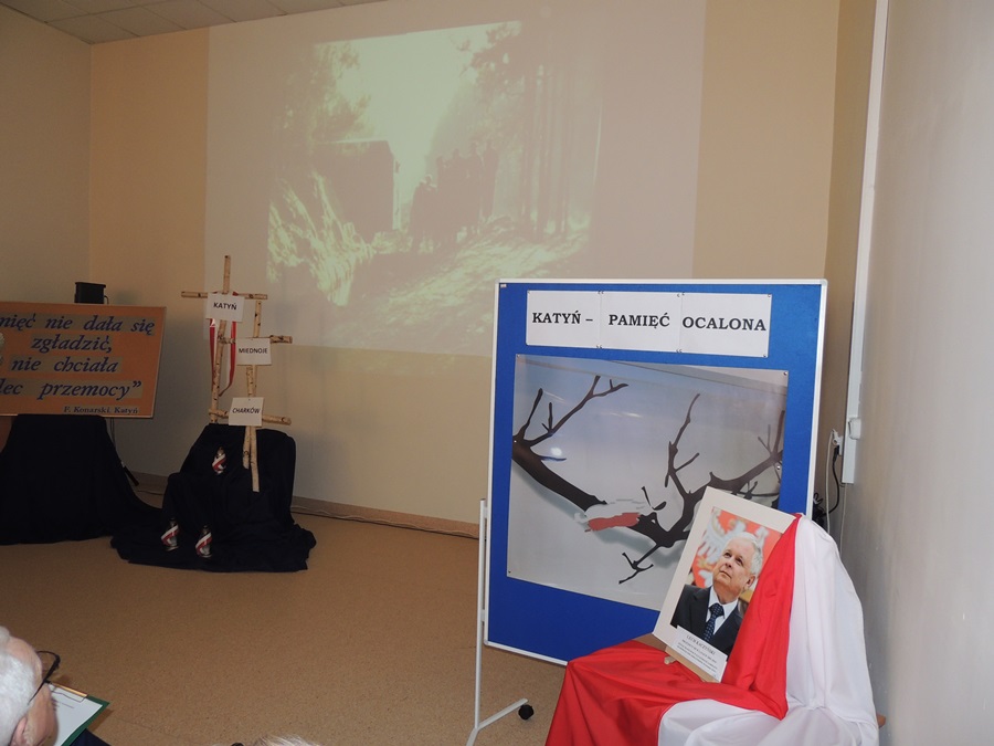 Na zakończenie programu poetycko-historycznego uczestnicy mogli obejrzeć wystawę „Katyń –pamięć ocalona”. Aktywne włączenie się społeczności naszej szkoły w obchody „Dnia Pamięci Ofiar Zbrodni Katyńskiej” przyczyni się do uczczenia i utrwalenia pamięci o polskich elitach zamordowanych przez sowieckich oprawców w Katyniu, Charkowie i Miednoje.
