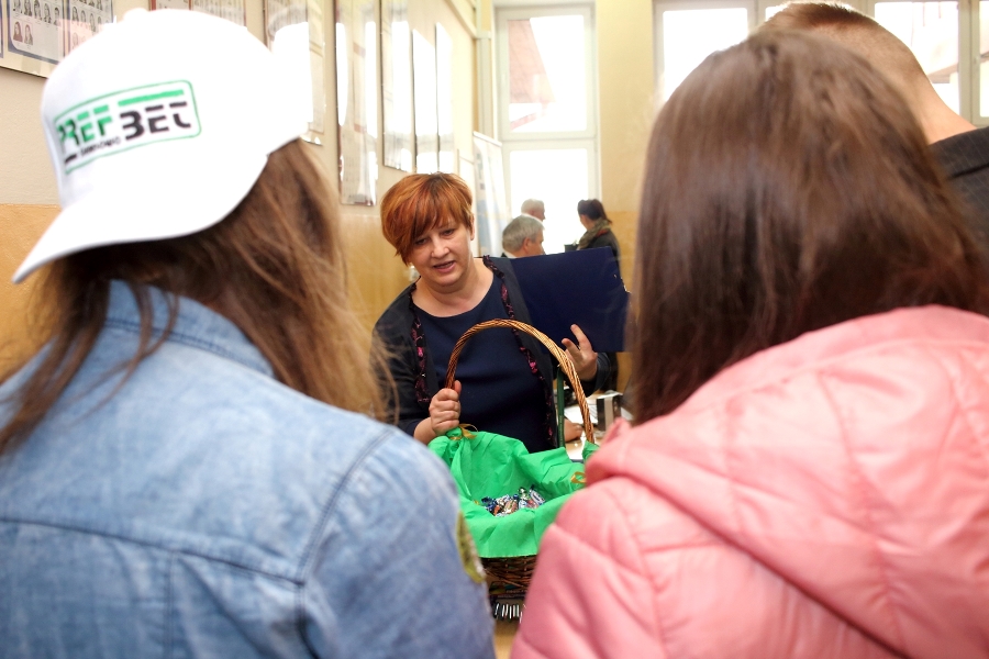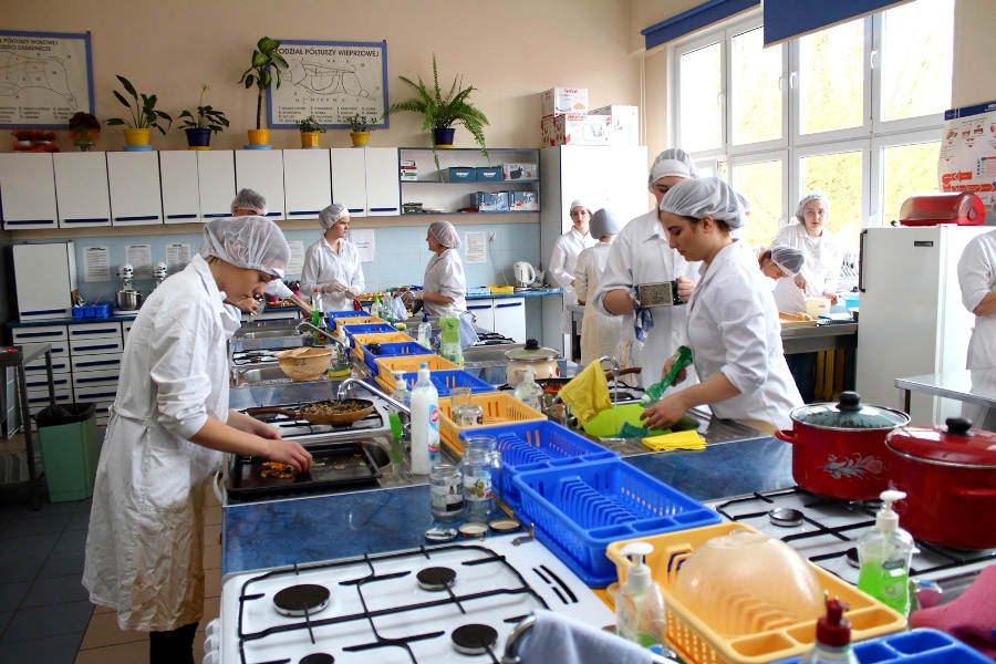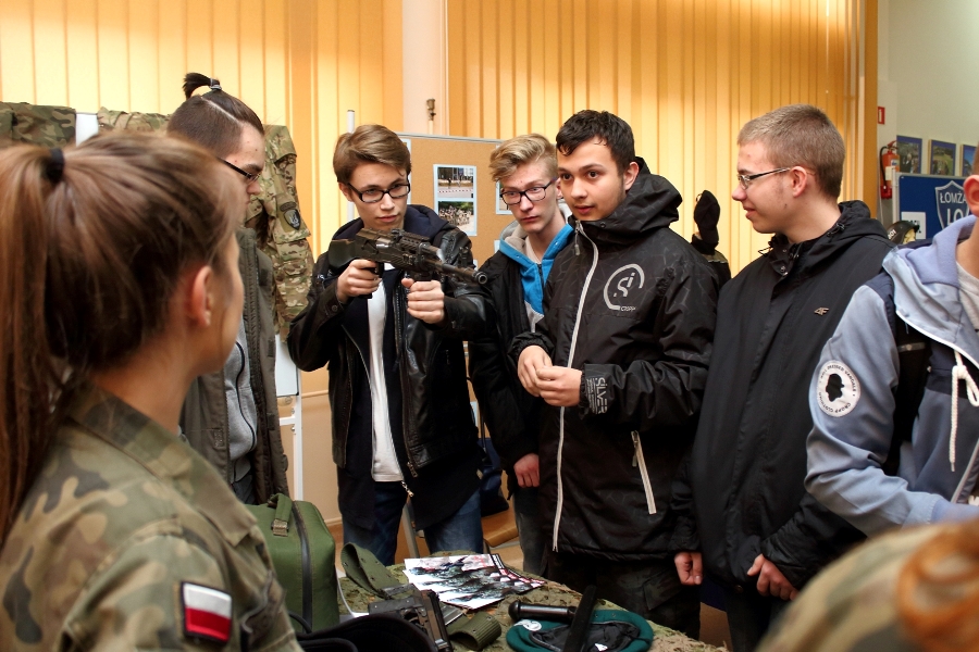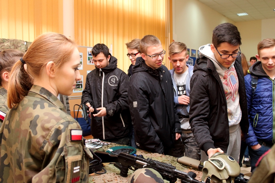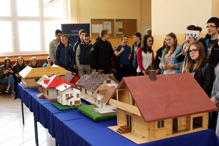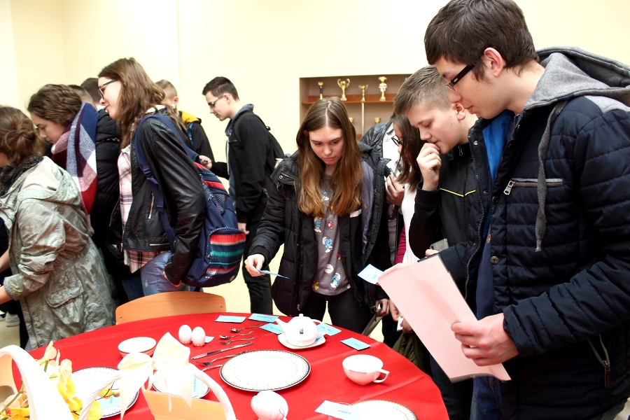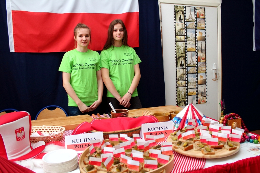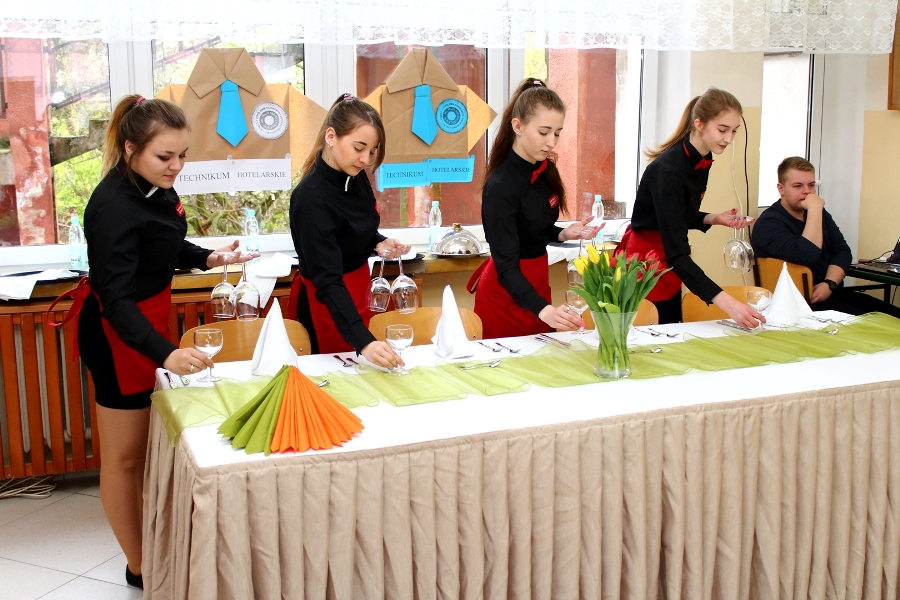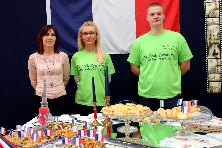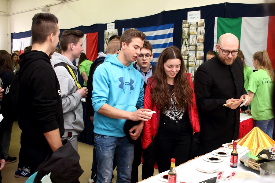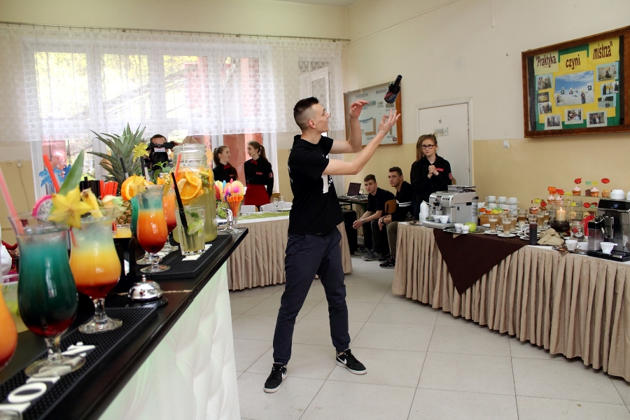 W dniu 26 kwietnia 2017 r. w ZSTiO Nr 4 w Łomży zorganizowano Dzień Otwarty. Celem przedsięwzięcia była prezentacja bogatego dorobku szkoły oraz przybliżenie gimnazjalistom aktualnej oferty edukacyjnej, zasad funkcjonowania naszej placówki, jej infrastruktury oraz planów na kolejny rok szkolny. Staraliśmy się ukazać szereg działań, które podejmujemy w codziennej pracy dydaktyczno – opiekuńczo – wychowawczej. Dzień Otwarty był okazją do spotkania z nauczycielami uczącymi poszczególnych przedmiotów, do pokazania panującego w szkole klimatu życzliwości, otwartości i akceptacji. Gości powitano w szkolnej auli, podano informacje o kierunkach kształcenia oraz zapoznano z programem Dnia Otwartego. Jego pierwszym punktem był pokaz sztuk walki oraz inscenizacja scenki obrazującej specyfikę pracy w policji w wykonaniu uczniów klas o profilu policyjnym. Dla gimnazjalistów przygotowano też konkurs leksykalny języka angielskiego i quiz: „Najważniejsze informacje o Wielkiej Brytanii i jej najciekawsze miejsca”. W szkolnej auli gimnazjaliści zwiedzali stoiska: IV Liceum Ogólnokształcącego, Technikum Hotelarskiego oraz ekspozycję militariów przygotowaną przez Strzelców Związku Strzeleckiego "STRZELEC" Jednostka Strzelecka 1012 im. 33 Pułku Piechoty Ziemi Łomżyńskiej w składzie: Strz. Rafał Zakrzewski, Sekc. ZS Paulina Karolina Kozioł, Sekc. ZS Natalia Złotkowska, Sekc. ZS Patryk Bognacki, sek. zs. Patryk Tyl oraz nasz absolwent Sekc. ZS Mariusz Murawski. Następnie gościom zaproponowano poznanie oferty kształcenia w zawodzie technik budownictwa. Zaprezentowano makiety domów jednorodzinnych wykonane przez uczniów. Atrakcję tej części spotkania stanowił konkurs plastyczny na najlepiej wykonany rysunek stroju budowlańca z uwzględnieniem jego najważniejszych elementów oraz konkurs wiedzy ogólnobudowlanej z nagrodami od sponsorów: MPC Łomża, Domel , Alior Bank i Prefbet Śniadowo, który przygotował swoje stoisko z okazji Dnia Otwartego, dając gimnazjalistom sposobność poznania oferty firm współpracujących ze szkołą. Z kolei w pracowni praktycznej nauki zawodu odbył się pokaz murowania z materiałów Prefbetu Śniadowo w wykonaniu ucznia klasy pierwszej Grzegorza Kołdysza. Pokaz podobał się przede wszystkim gimnazjalistom zainteresowanym nauką w technikum budowlanym i zasadniczej szkole zawodowej.W dalszej części spotkania młodzież z branży hotelarskiej zaskoczyła przybyłych profesjonalnie przygotowaną prezentacją musztry kelnerskiej, obsługi klientów i gości w recepcji hotelu, sztuki baristycznej oraz pokazem barmańskim. Uczniowie przyrządzali i serwowali bezalkoholowe drinki oraz uczyli gimnazjalistów artystycznego składania ręczników hotelowych.Z kolei młodzież z Technikum Żywienia i Usług Gastronomicznych przygotowała dla gimnazjalistów prezentację „Kuchnie Świata”. Można było obserwować proces powstawania potraw kuchni polskiej , francuskiej (m.in. tarty na słono i na słodko), greckiej (m.in. baklawa, koreczki serowo - warzywne) i japońskiej ( m.in. sushi). Gości zaproszono także na degustację. Ostatni punkt programu stanowiła Memoriada przygotowana przez młodzież z liceum ogólnokształcącego o profilu psychopedagogicznym. Gimnazjaliści uczestniczyli w zajęciach, podczas których wykonywali ćwiczenia doskonalące pamięć, spostrzegawczość i koncentrację uwagi. Wszyscy uczestnicy zajęć otrzymali pamiątkowe dyplomy. Gimnazjaliści zapoznali się z osiągnięciami uczniów liceum, technikum i z s z. Frekwencja dopisała, goście przybyli bardzo licznie. Wśród odwiedzających byli m.in. uczniowie z Gimnazjum nr 1, 8, 9, a także Nowogrodu, Piątnicy i Zbójnej wraz z opiekunami. Mamy nadzieję, że główne założenie naszego przedsięwzięcia spełniło oczekiwania przybyłych i z wieloma z nich spotkamy się w nowym roku szkolnym. Wszystkim biorącym udział w Dniu Otwartym ZSTiO Nr 4 w Łomży bardzo dziękujemy.